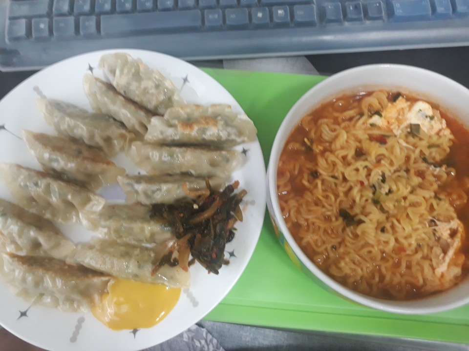 야식으로 군만두와 라면 어떤가요