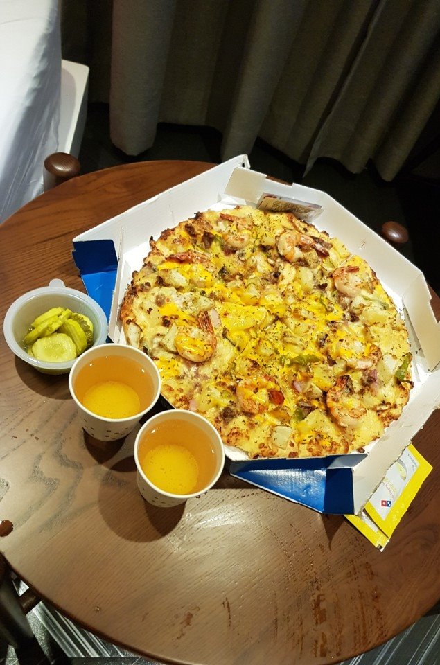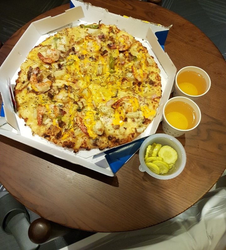 바로바로 '도미노피자 블랙타이거 슈림프'와 '던킨도너츠 먼치킨' 입니다.