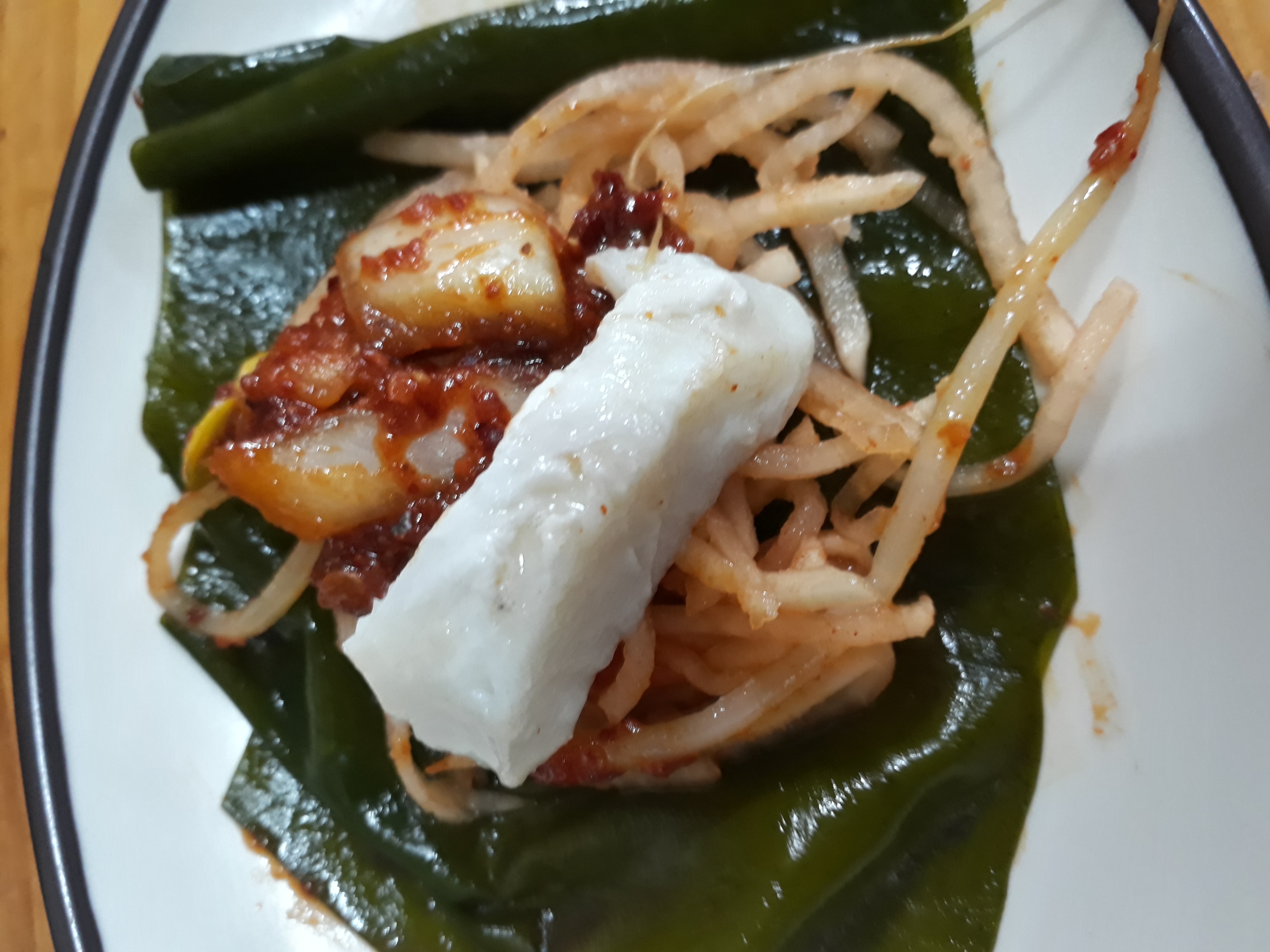 다시마에 싸서 먹기도 하고 촵촵촵촵