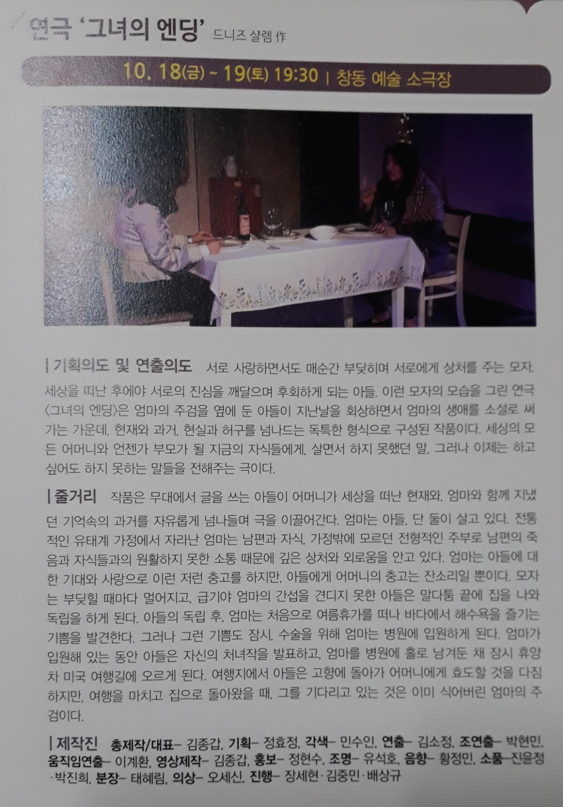 연극 '그녀의 엔딩' 드니즈 살렘, 창동 예술 소극장