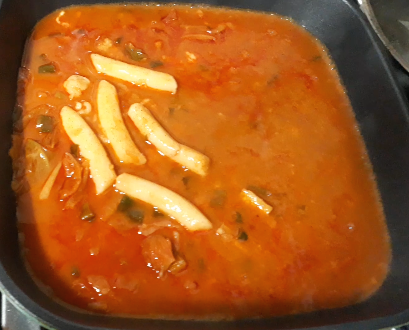 기름을 둘러준 후 약불에서 떡볶이를 붓습니다. (아참 하루 2큰술 정도의 콩기름은 약이 됩니다.)