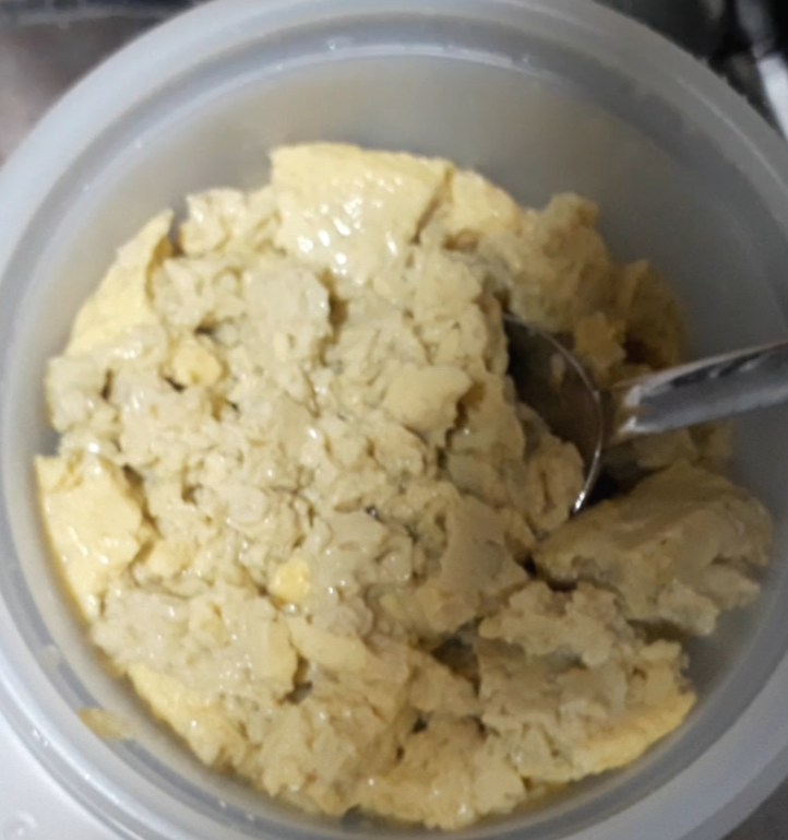 그리고 계란찜이 남으셨다면 적당히 으깨어 넣어줍니다.