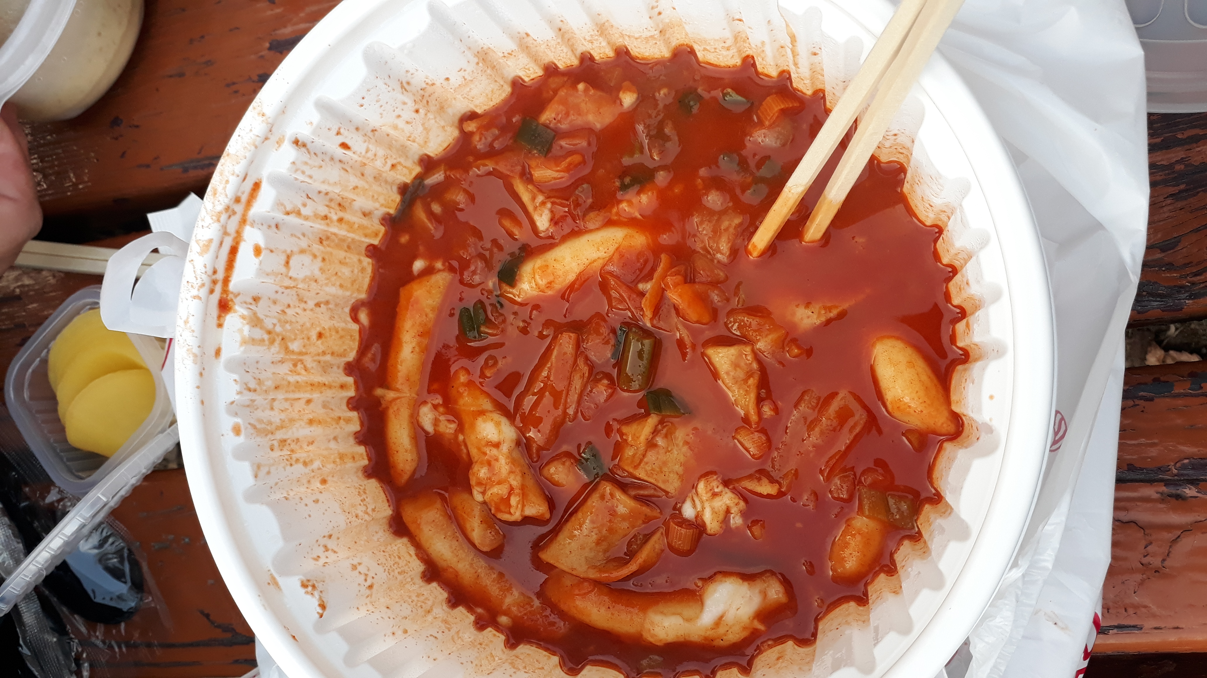 야외에서 먹은 건 아마도 신의 한 수였을지도 모르겠네요. 아시죠? 라면은 야외에서 먹어야 제맛이듯. 떡볶이도 야외가 제격입니다. ㅎㅎ