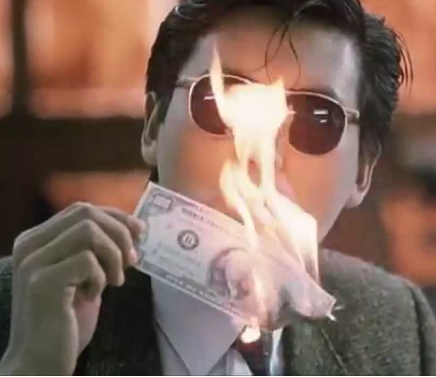 '별들이 소곤대는 홍콩의 밤거리'라는 유명한 노래에도 나오듯이 세계에서 가장 밤이 화려한 곳은 바로 홍콩의 밤거리였습니다. 주윤발이 지폐에 돈을 붙여 담뱃불을 붙이는 장면은 가히 충격적이죠. 자본주의에서 가장 큰 혜택을 누리게 해주는 돈이 그의 손에선 한낱 담뱃불이나 붙이는 종이 쪼가리에 지나지 않습니다. 동일한 의미는 아니겠지만 '운수 좋은 날'에서 김첨지가 돈이 잘 벌려서 행복해하면서도 돈을 던지면서 욕을 하던 아이러니한 장면이 연상됩니다.