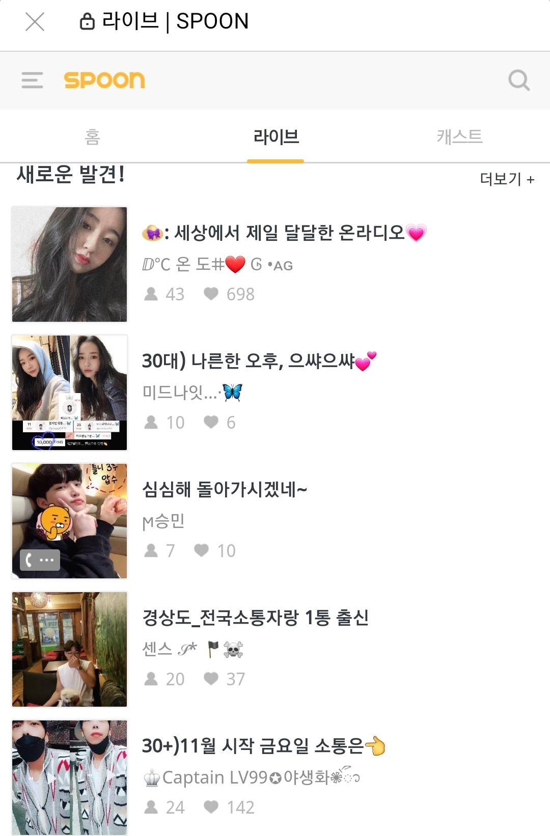 이런식으로 추천도 하죠. 파이가 커져야 스푼도 먹고살 수 있으니 이건 유튜브랑 동일합니다. 일정 수가 올라오거나 괜찮은 방송은 이렇게 밀어줍니다.
