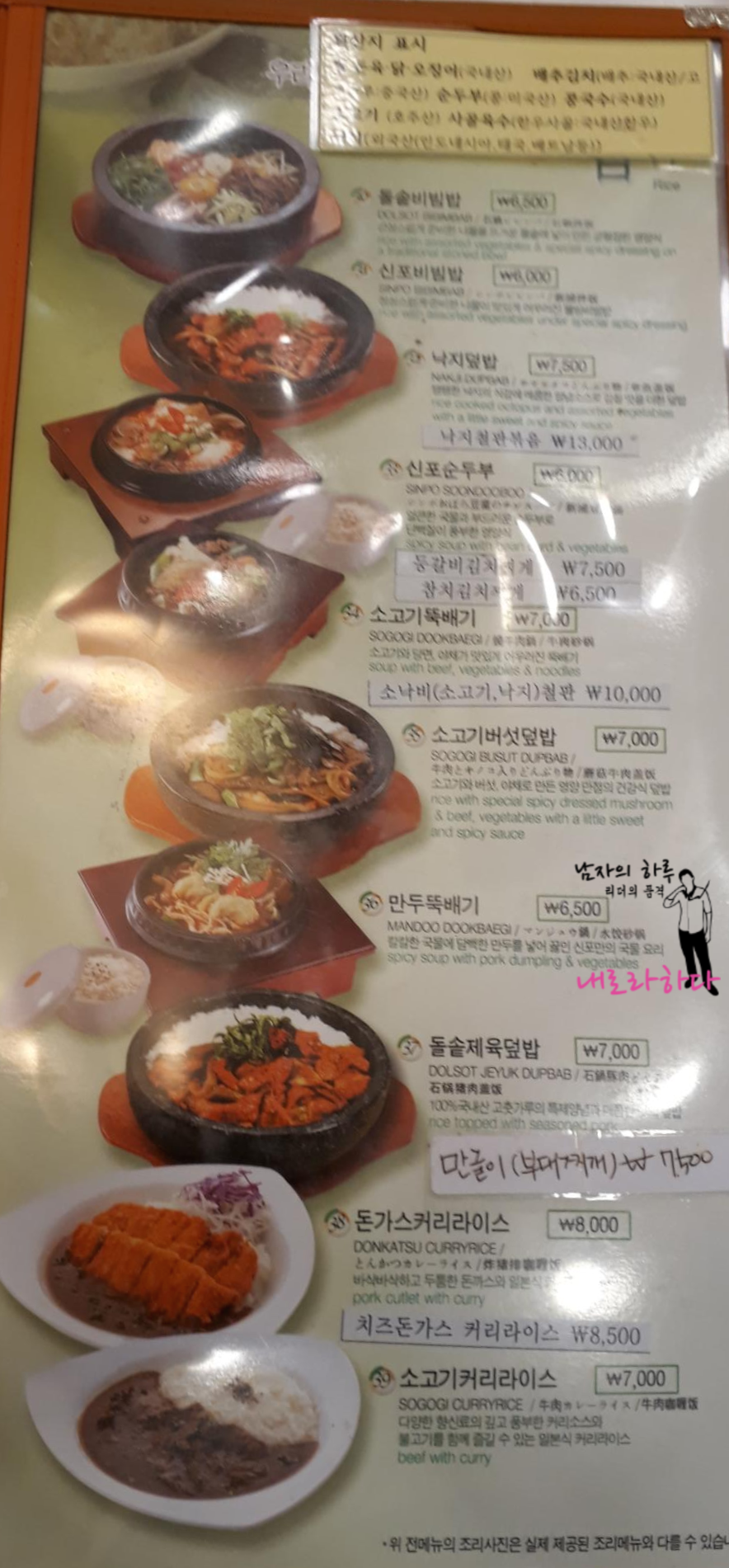 정성을 담아 입 맛을 돋우는 별미류, 그리도 우리... 다음에 갑툭원산지 표시가 나오는 메뉴판입니다. ㅋㅋ