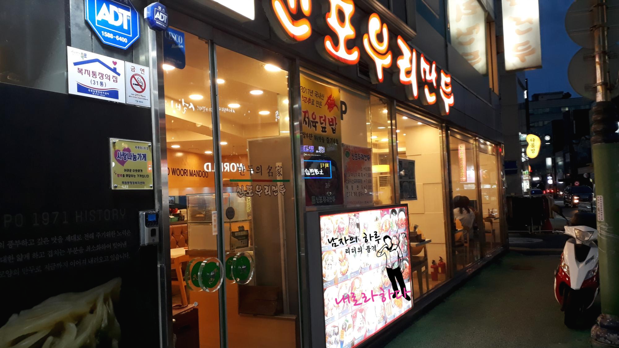 sinpo woori mandoo(쉰포우 워우리 만도우~) 벽에 이런 거 있으면 유명한 집이죠?