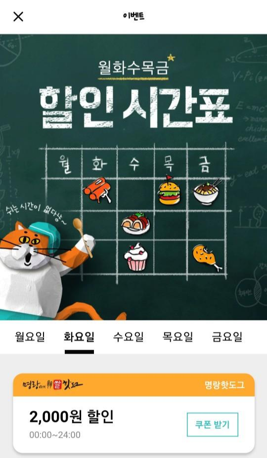 배달의 민족 할인시간표가 월요일에서 금요일까지 있는데요