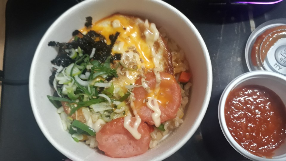 크 한입 먹어봤더니 길가에 파는 그 컵밥 맛 그런 느낌이 납니다