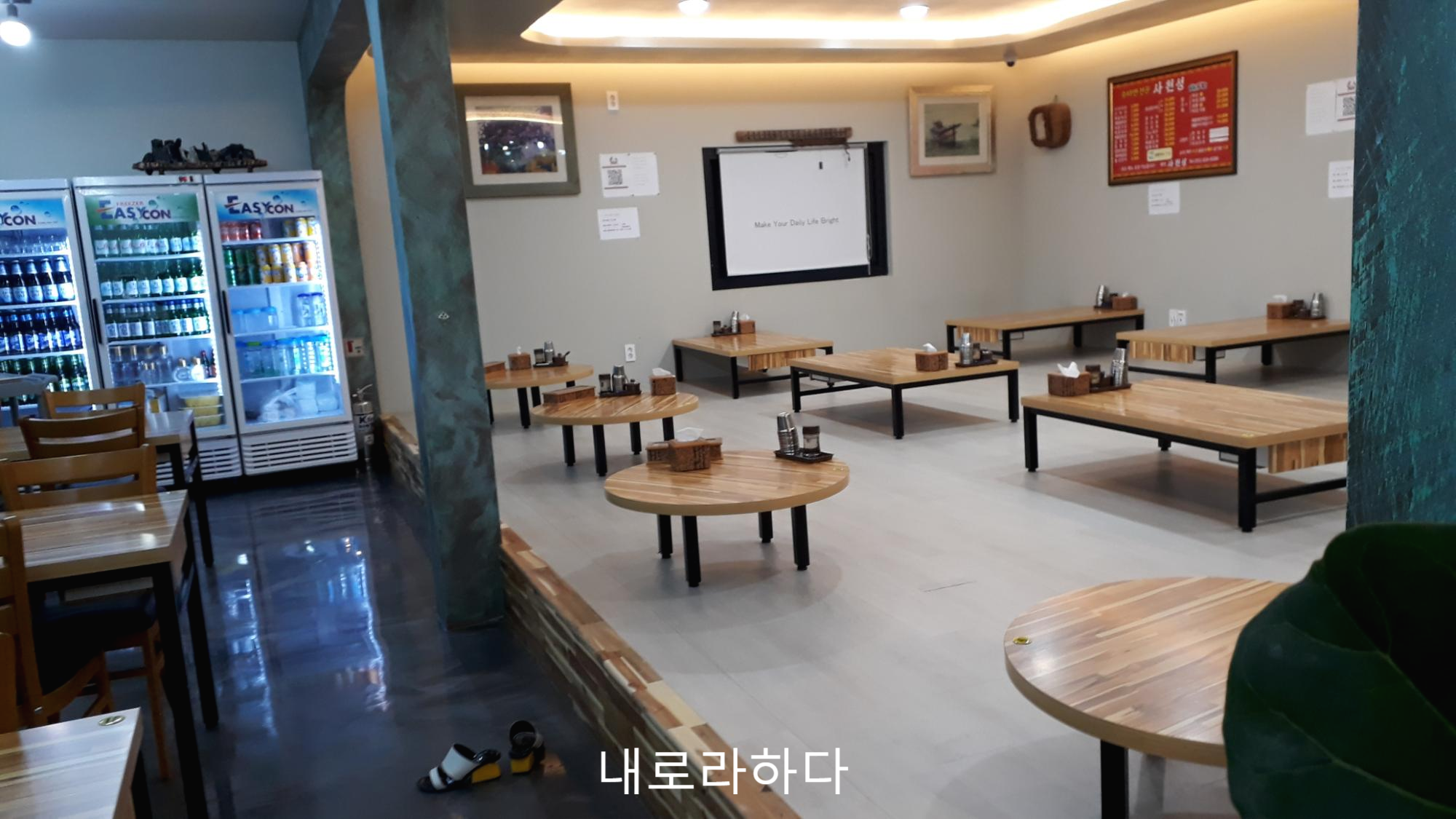 의자에 앉아서 드시거나 이렇게 바닥에서 따뜻하게 드실 수도 있습니다. 추운 날 어르신들과 함께 오기 좋겠군요.