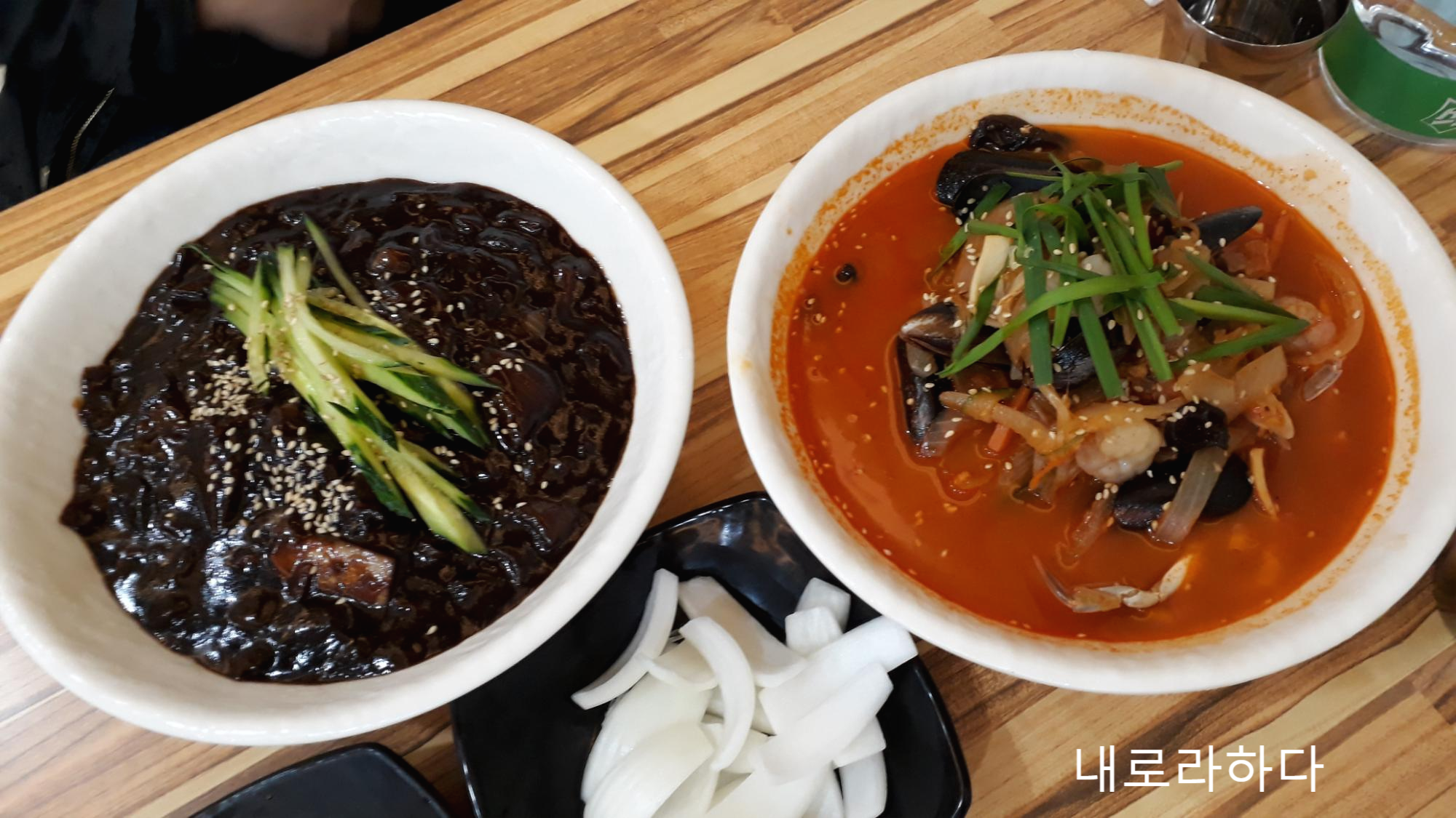 드디어 기다리던 짜장면과 짬뽕이 나왔네요.