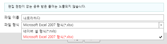 6. 중요. 네이버 셀 형식(*.nxls)은 네이버에서만 열리므로 아래에 2007 형식(*.xlsx)으로 저장하기(혹시 모르니 안전하게 다른 이름으로 저장하세요.)