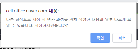 * 아래처럼 경고 화면이 뜸(특이점은 없음, 한컴오피스 뷰어에만 안 열림)