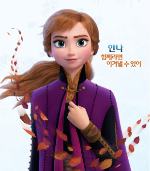 1편에서 그랬듯 2편에서도 강인한 마법의 힘을 지녔지만 두려움이 많은 현실적인 인물입니다. 안나의 도움 없이는 혼자서 문제를 해결하지 못합니다. 늘 목숨이 위험해지는 위기를 맞게되고 안나가 또 구출해냅니다. 물론 안나 또한 엘사를 필요로 하지만...