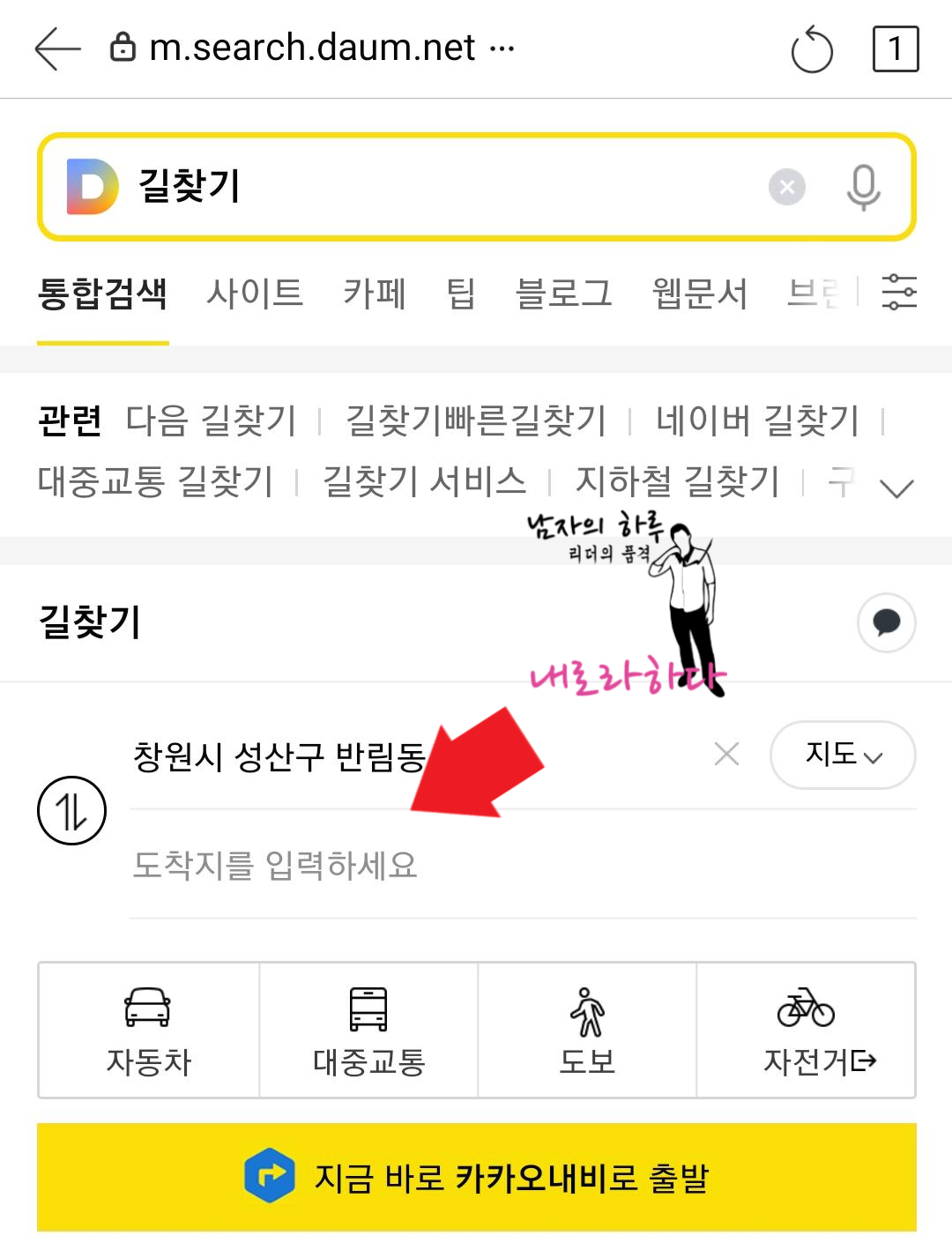 다음은 다음 카카오 길찾기 입니다. 음성 검색은 네이버 길찾기와 큰 차이가 없습니다.