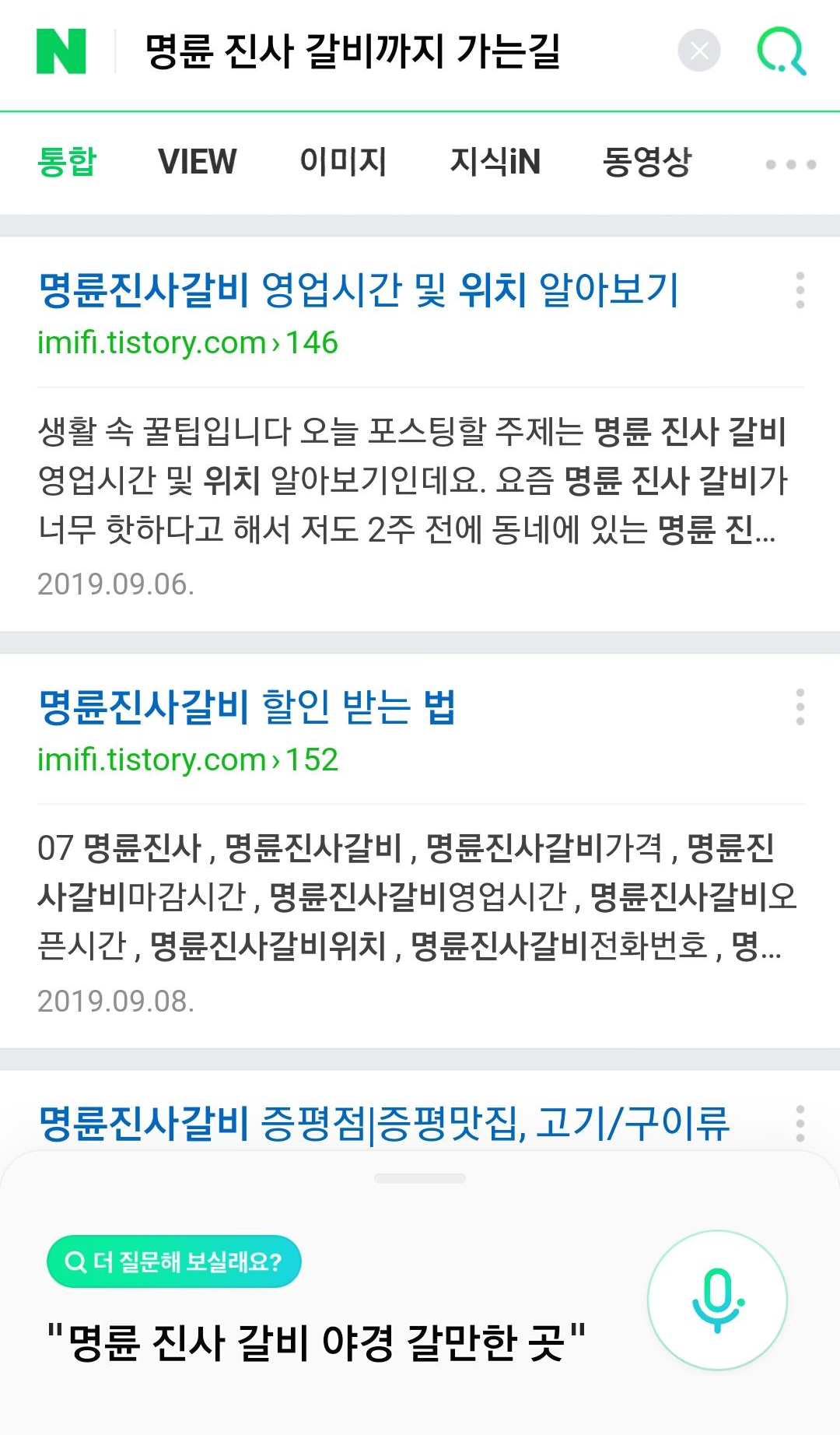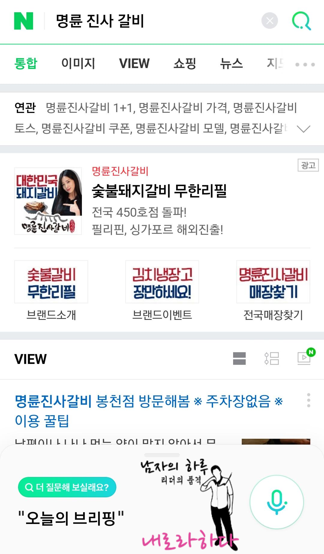 1. 네이버 음성 검색기를 눌러서 '명륜 진사 갈비 찾아줘' 라고 말합니다.