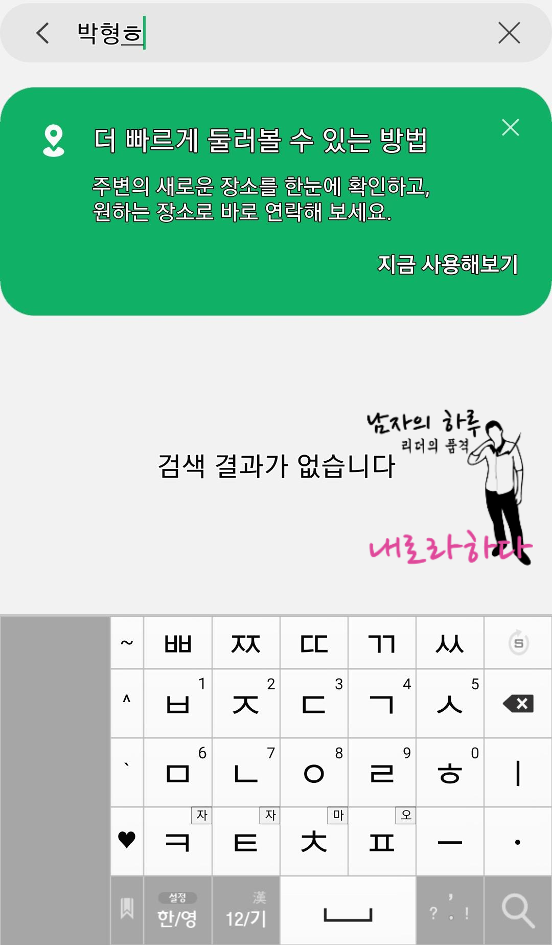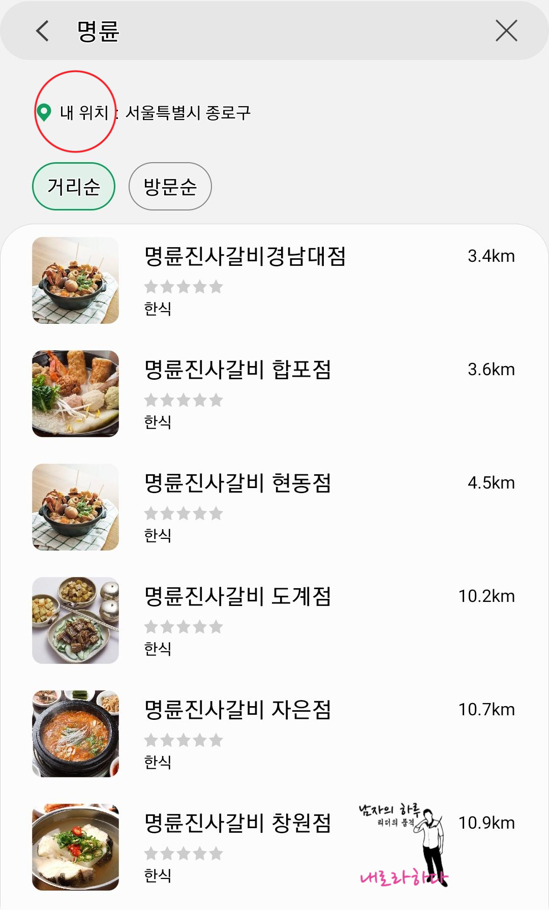 10. 명륜이라고 치니까 거리순으로 나옵니다. 제가 서울 종로에 있군요. ㅋㅋ 정확도를 높여야겠습니다. 내위치를 변경해주니 정확하게 나옵니다. 이것도 100% 다 나오진 않습니다.
