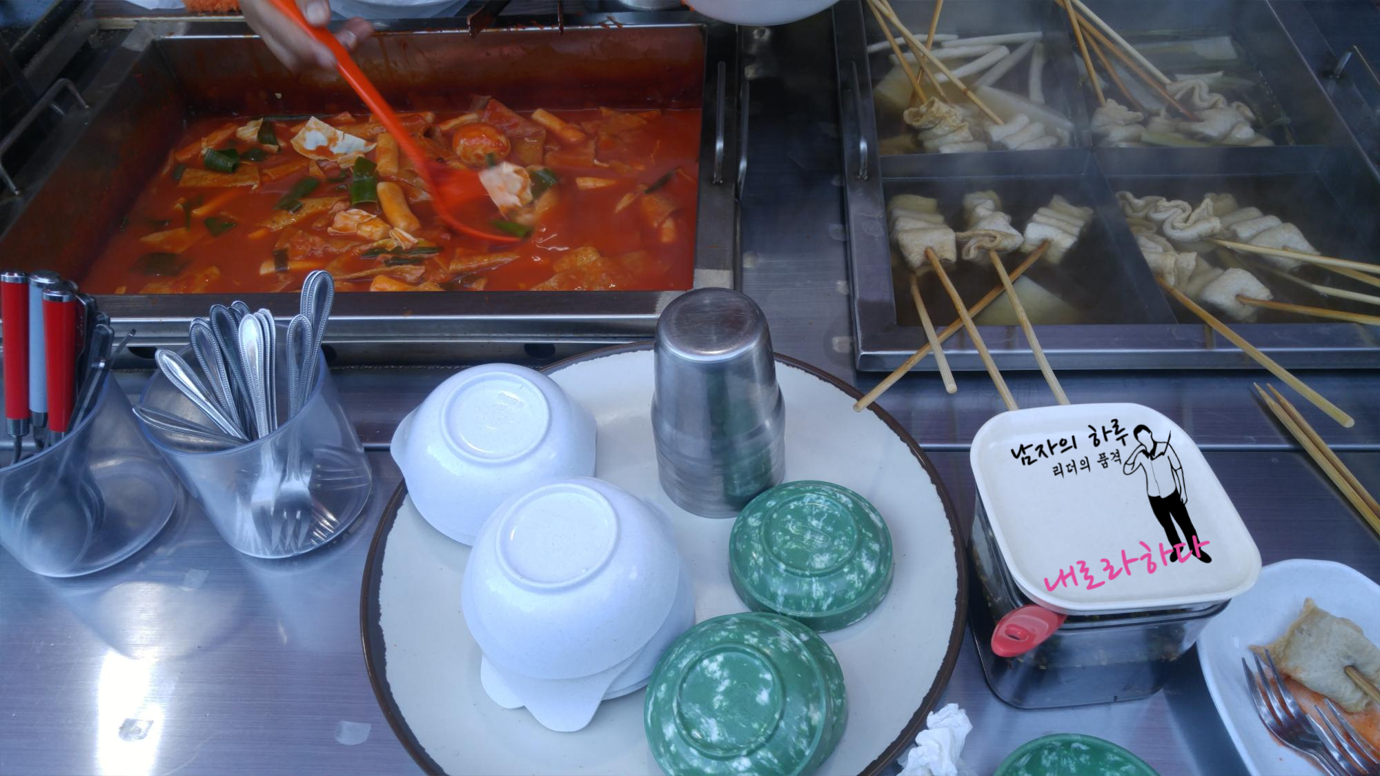 그릇들도 참 옛날 무늬에 그때 그 모양이네요. 일회용이 아니라서 좋고 어린 시절이 떠올라서 좋았습니다. 어릴적 100원 내고 아주머니 몰래 떡볶이 똥가리* 난 거 집어먹던 시절 ㅋㅋ.
