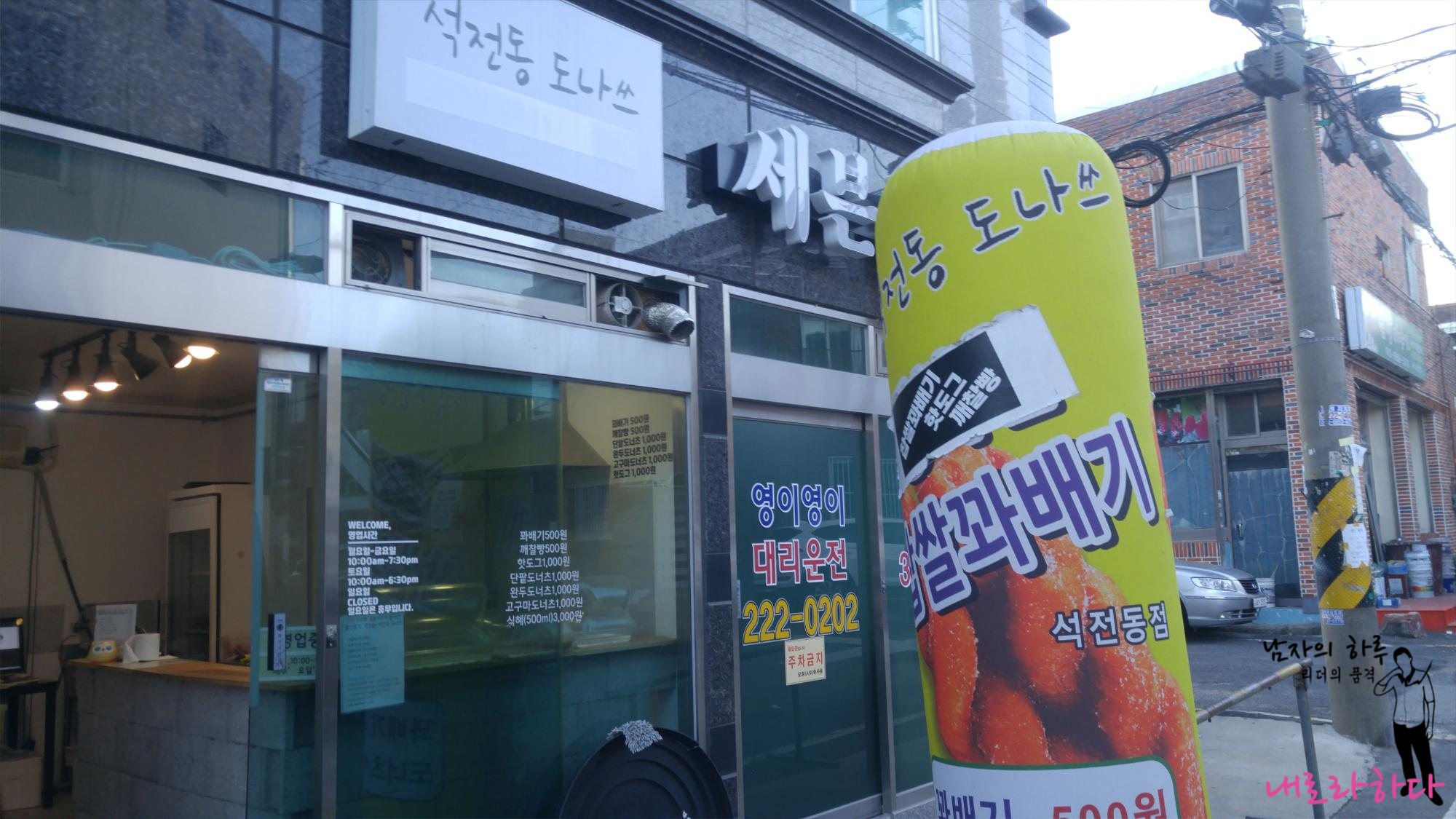 이름이 '석전동 도나쓰'군요. 왠지 피곤해 보이시는 사장님. 오늘 장사가 잘 되셨나봐요?