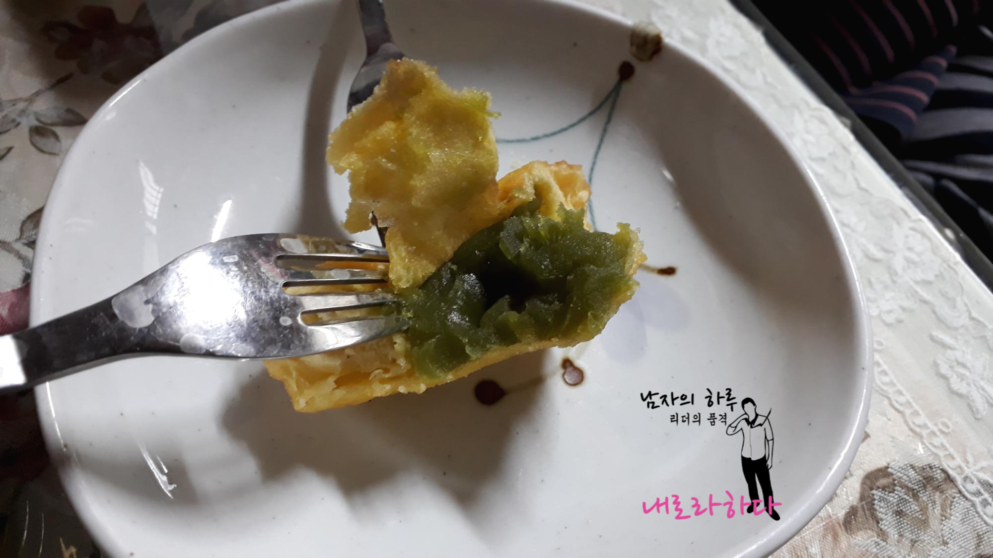 완두 도나쓰 이거 장난이 아닙니다. 한입 남은 거 보이시죠? 하마터면 못 찍고 삼킬 뻔 했습니다. ㄷㄷ