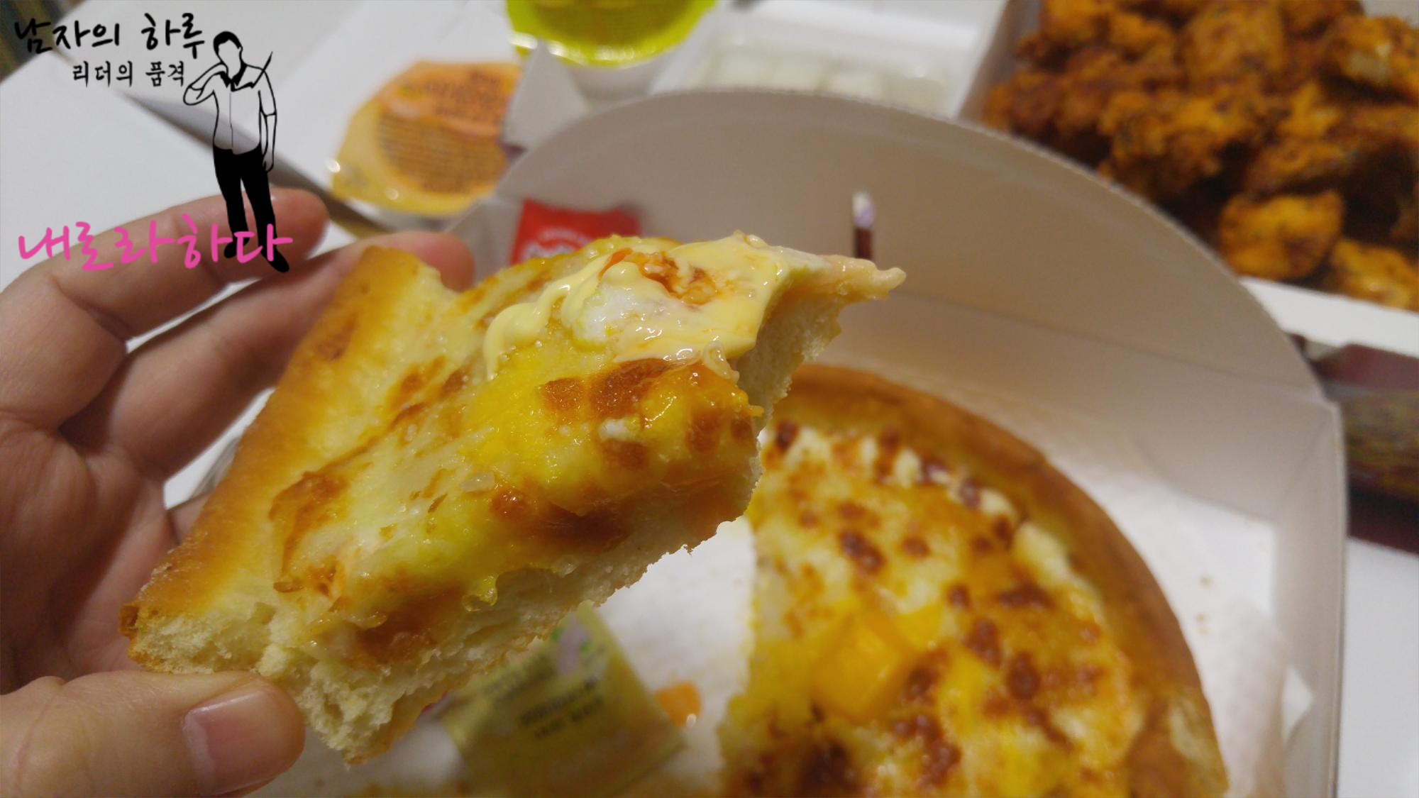 '내입에치즈피자가맞을줄이야'였습니다.