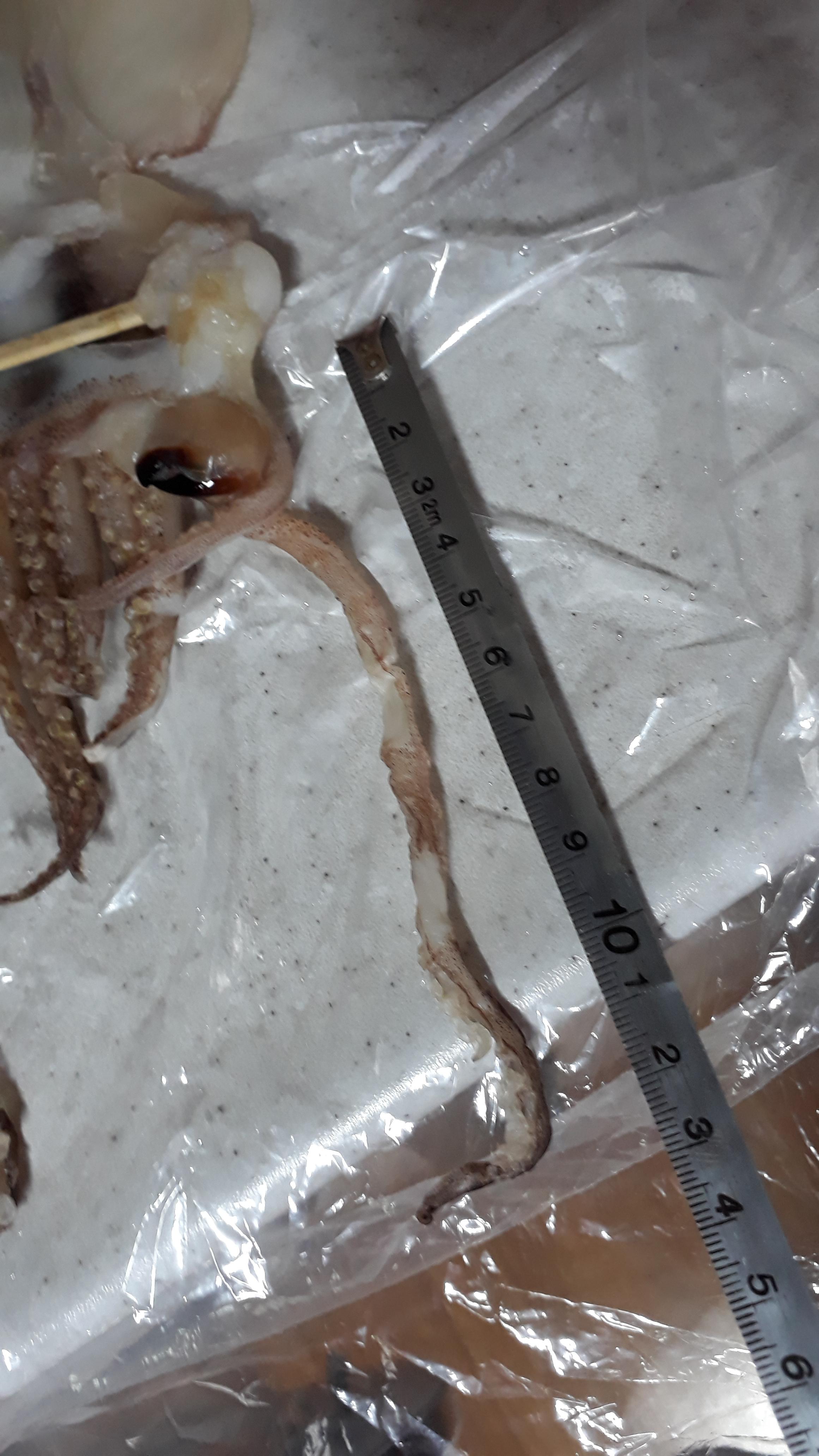 반건조 오징어의 크기를 좀 재볼까요.