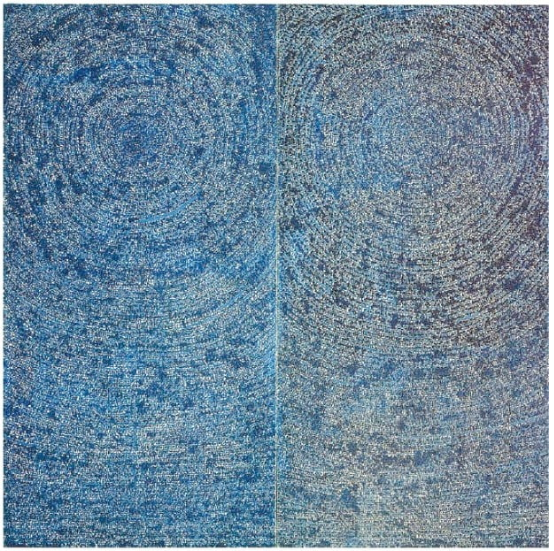 정중동을 넘어선 파란 점으로 이루어진 선과 면은 저그림이 그림인지 의심하게 만듭니다. 우린 저그림에서 무언가를 찾아내야할 것 같은 조바심을 느낍니다. 그러다 결국 각자의 이야기를 만들어 내죠. 그런 의미에서 추상화는 수만 가지의 그림을 그려낸 것이 아닐까요?