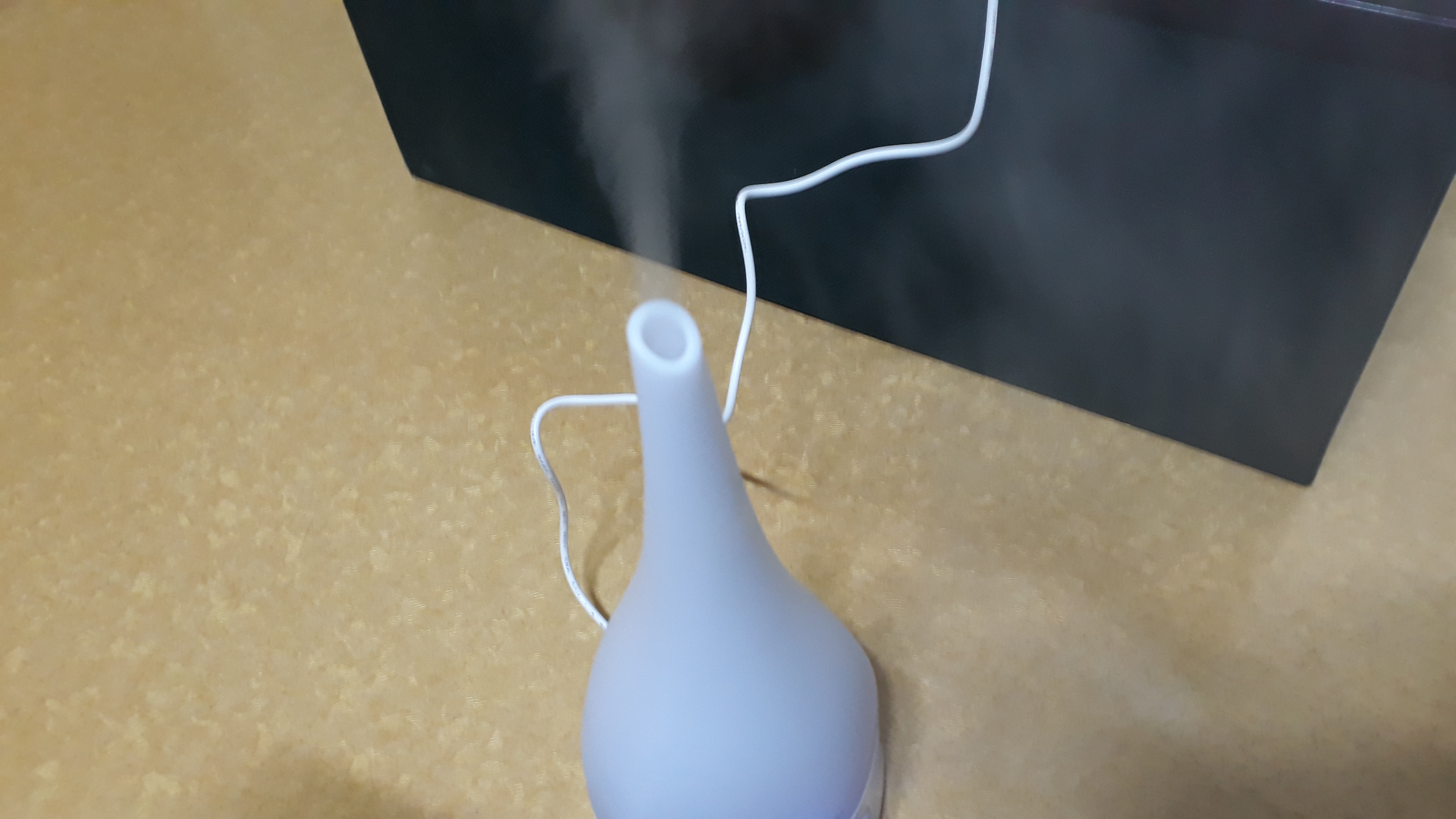 미니 가습기는 바닥에 센서가 있어서 들었다가 놓으면 켜집니다. USB라서 노트북에 꽂거나 별도로 제품을 구매해야 합니다. 불을 끄는 기능이 없어서 시야를 방해할 수 있습니다.