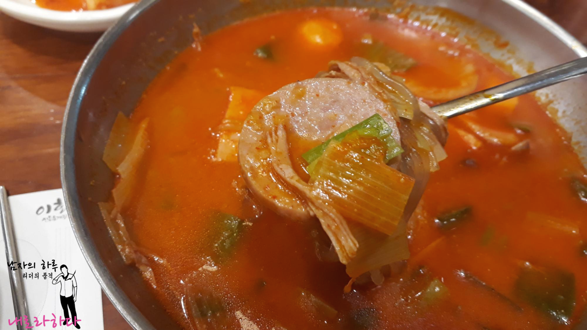 이화수 전통육개장의 기본 메뉴에다가 소시지 넣고 끓인 거죠.^^