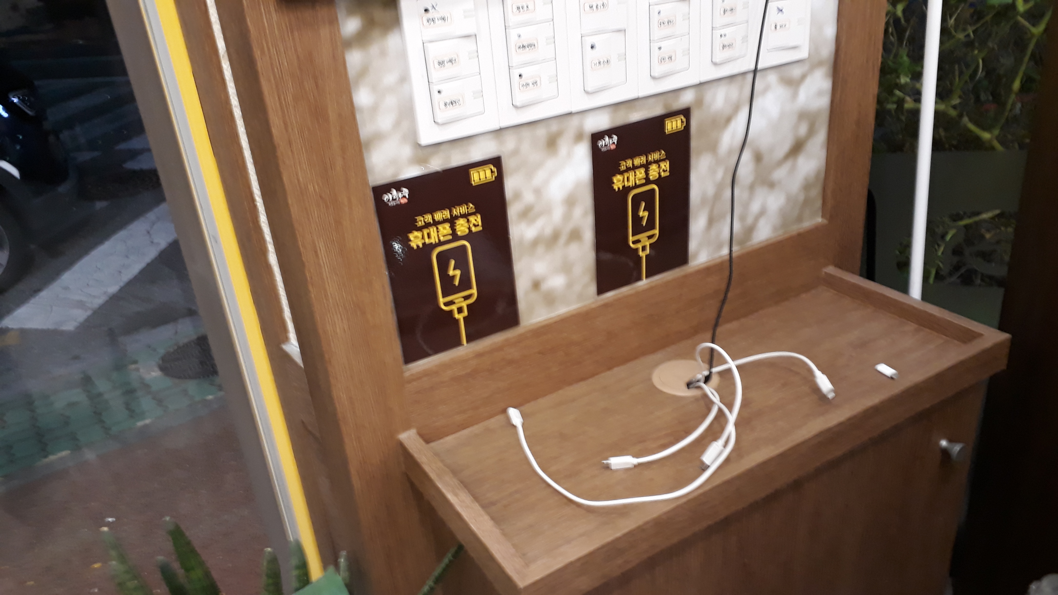 입구에는 휴대폰 충전도 가능합니다.