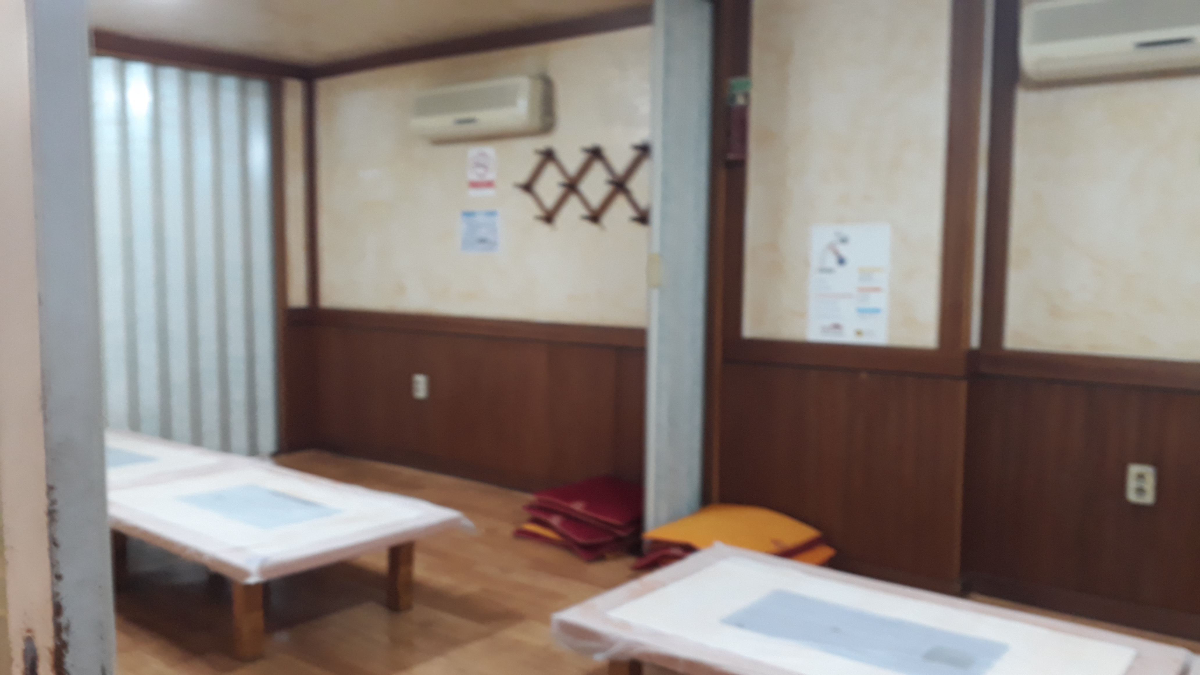 1층과 2층이 있으며 실내는 칸막이 형태의 온돌입니다. 바닥이 아주 뜨끈뜨끈해서 더울 수 있습니다.
