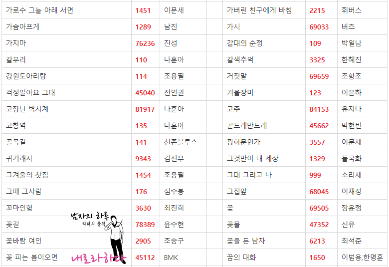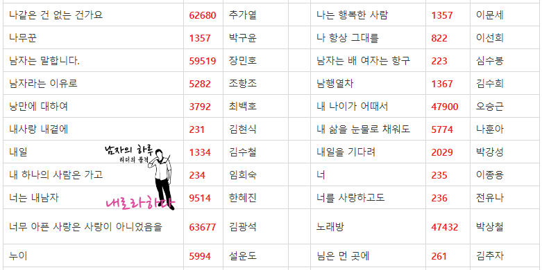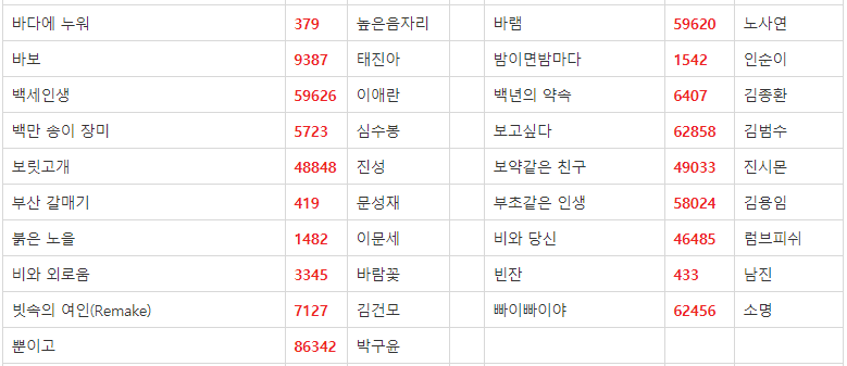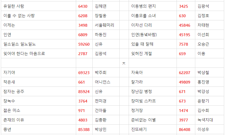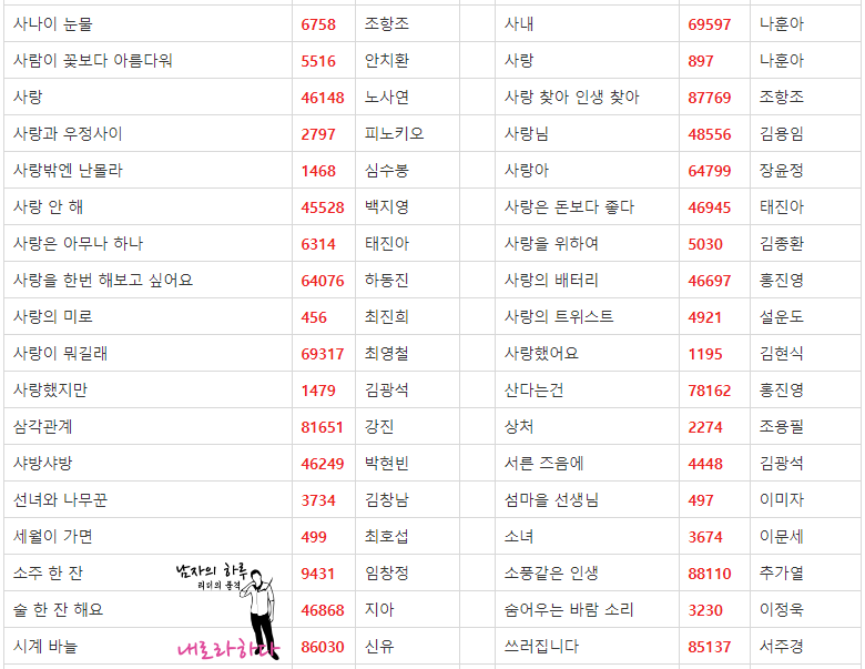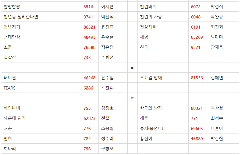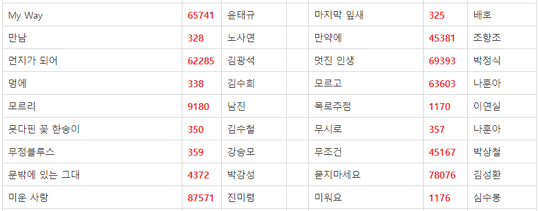 금영 노래방 애창곡 2019 버전입니다. 내로라하는 쟁쟁한 가수분들이 많으시네요.^^