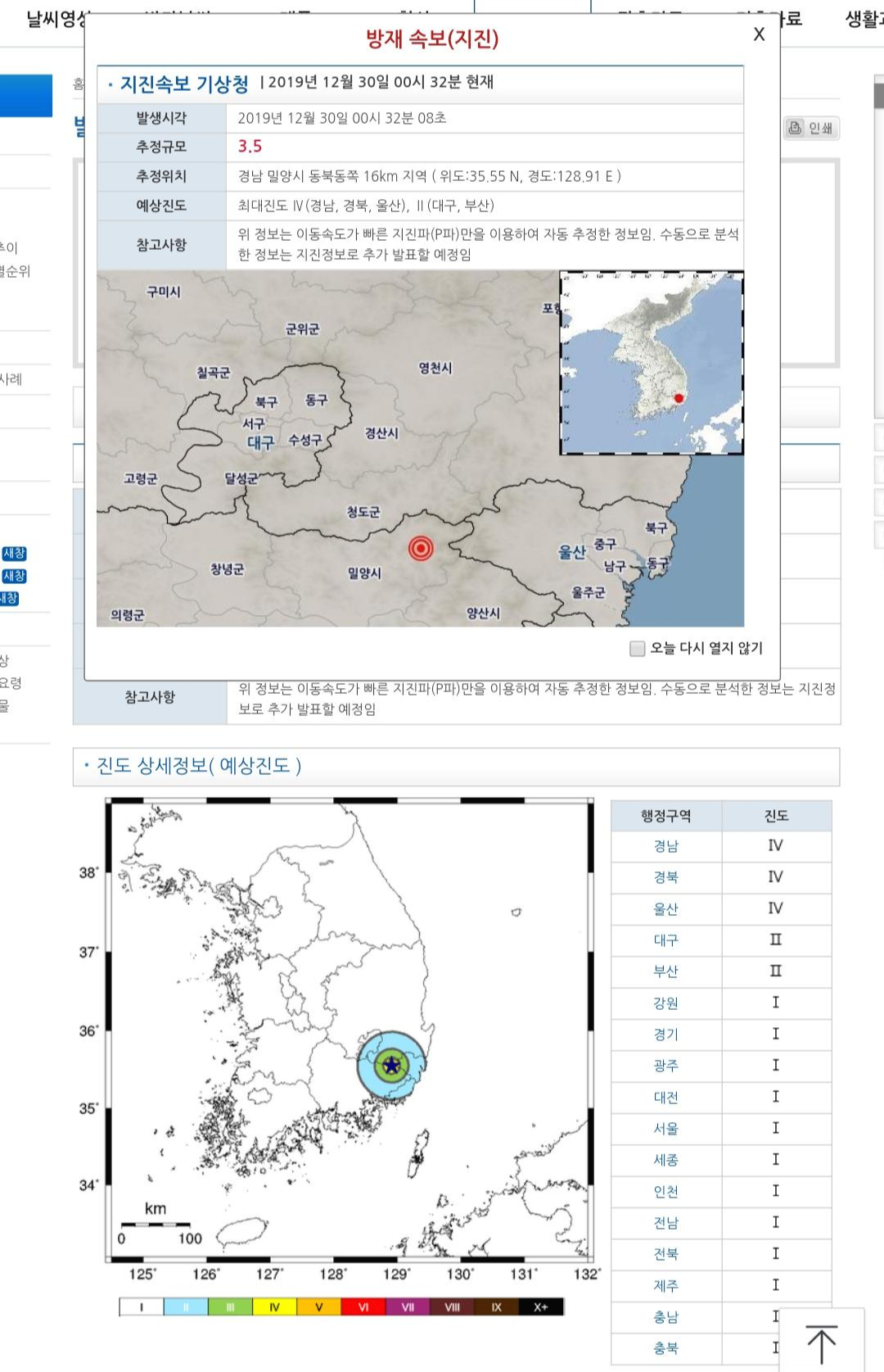 위치가 저기면 제가 있는 곳과는 거리가 제법 있는데도 이렇게 흔들리니 밀양분들은 더 크게 느끼셨을 듯합니다.