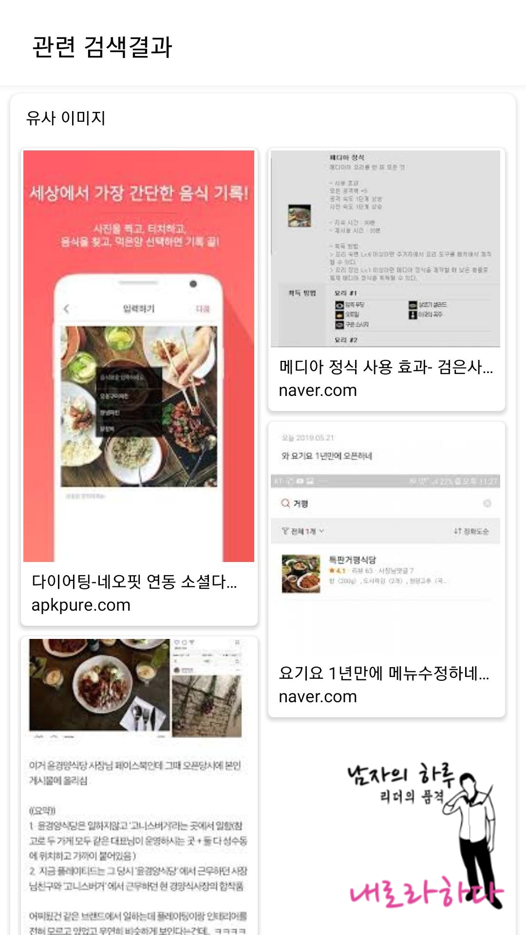 3. 드디어 검색결과가 나왔습니다. 스테이크, 접시, 포크 등을 분석하고 제법 유사한 사진을 찾았습니다.