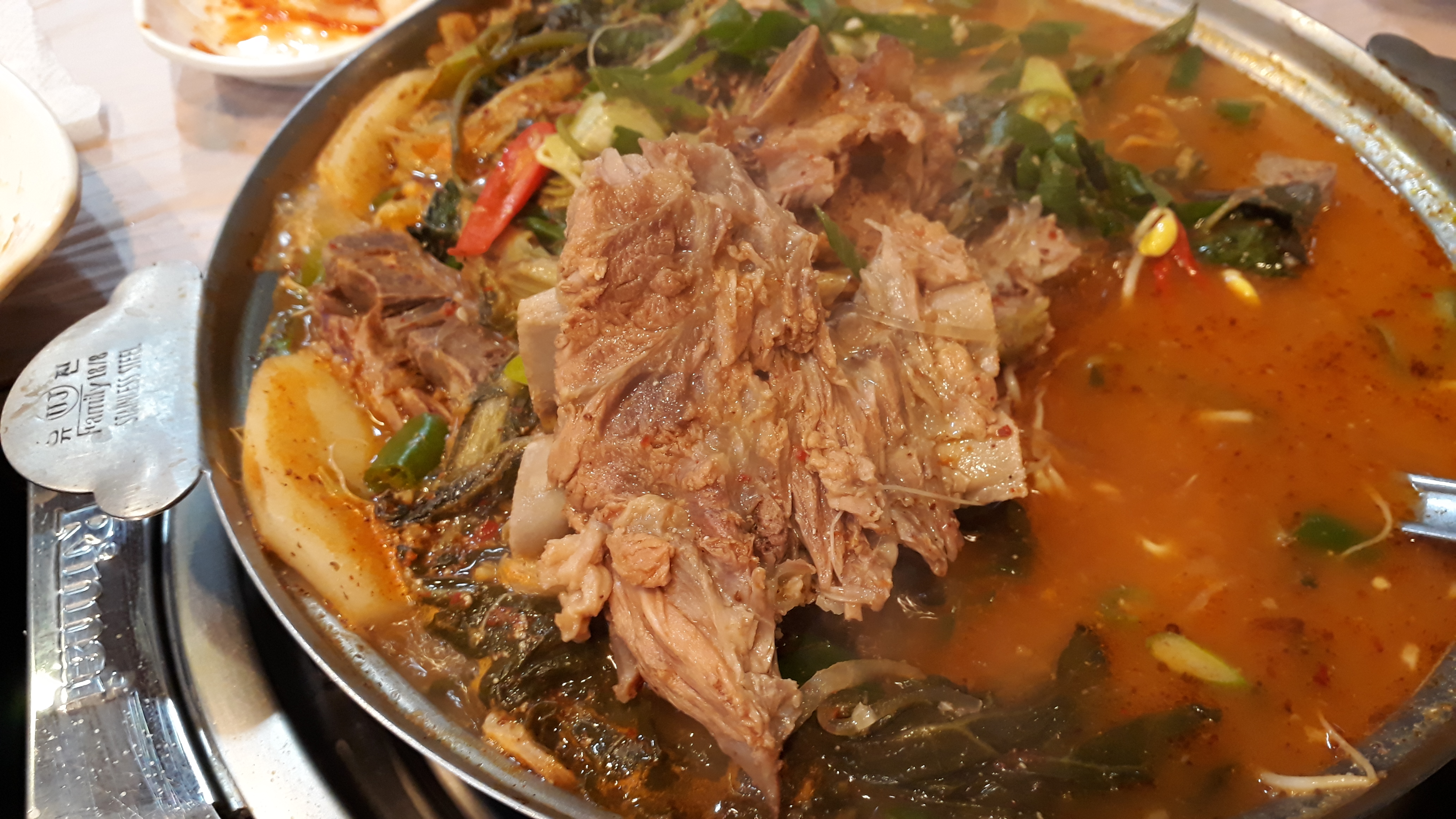 사실 이집은 매운 등뼈 해물찜과 해장국이 딱인 집입니다. 한국인이라면 싫어할 수가 없는 맛이죠.^^ 밑에 보시면 구글 평점이 3.6점인데 아마도 그분들은 감자탕만 드셨을 겁니다. 보통 감자탕집의 등뼈짐은 간장을 기초로한 짭조름하고 달콤한 양념이지만, 등뼈 해물찜은 등뼈와 매콤한 해물찜이 섞여서 다른 곳에선 찾기 힘든 요리입니다.