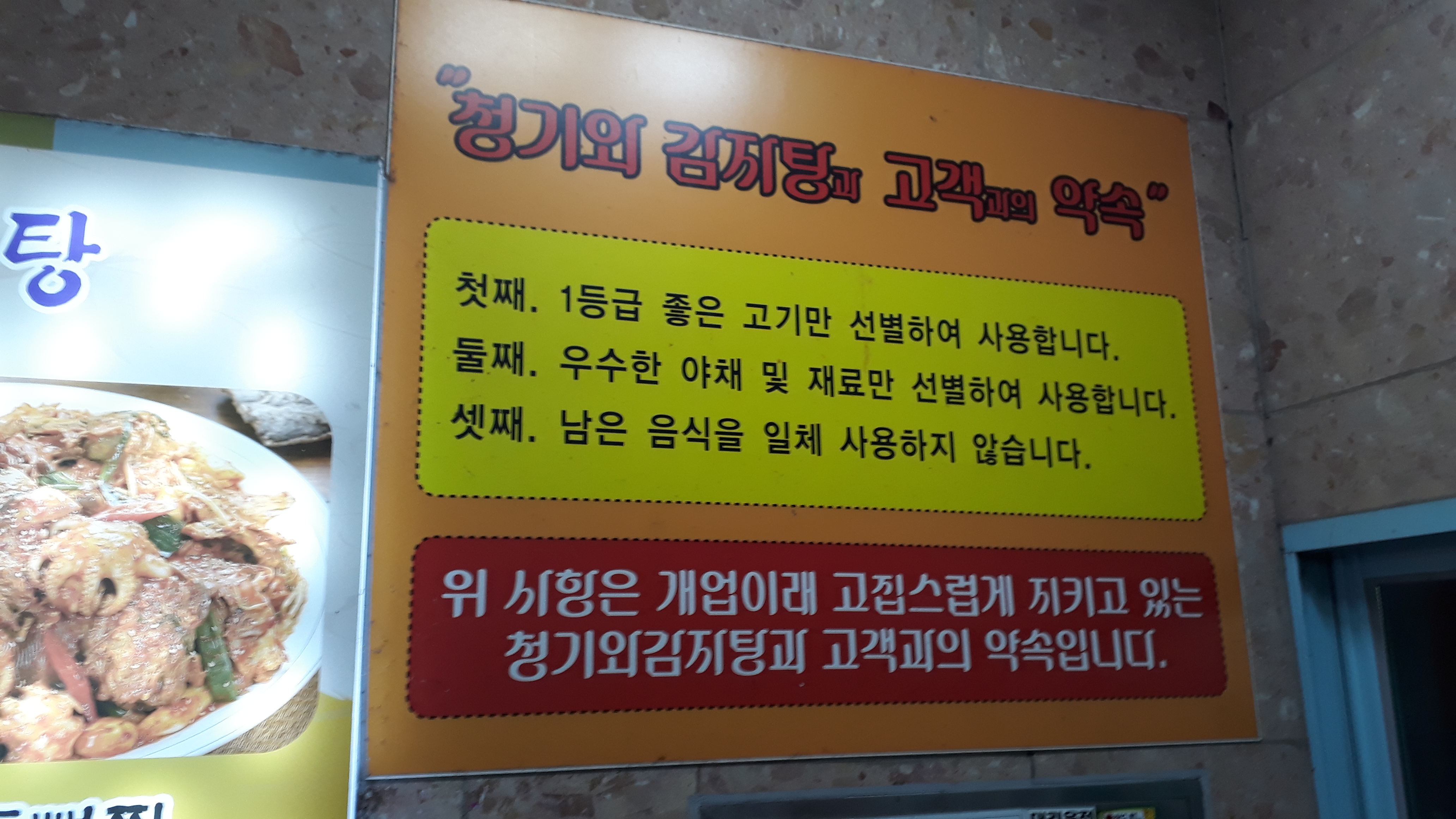 청결도: ★☆☆☆☆ (의자에 고춧가루가 두 개 있어서 닦았네요. 직원분이 마침 같이 보셔서 상당히 미안해 하셨는데 보기 드문 장면이었습니다. 수저통도 그렇고 자리가 많다보니 세심한 관리는 힘든가 봅니다.)