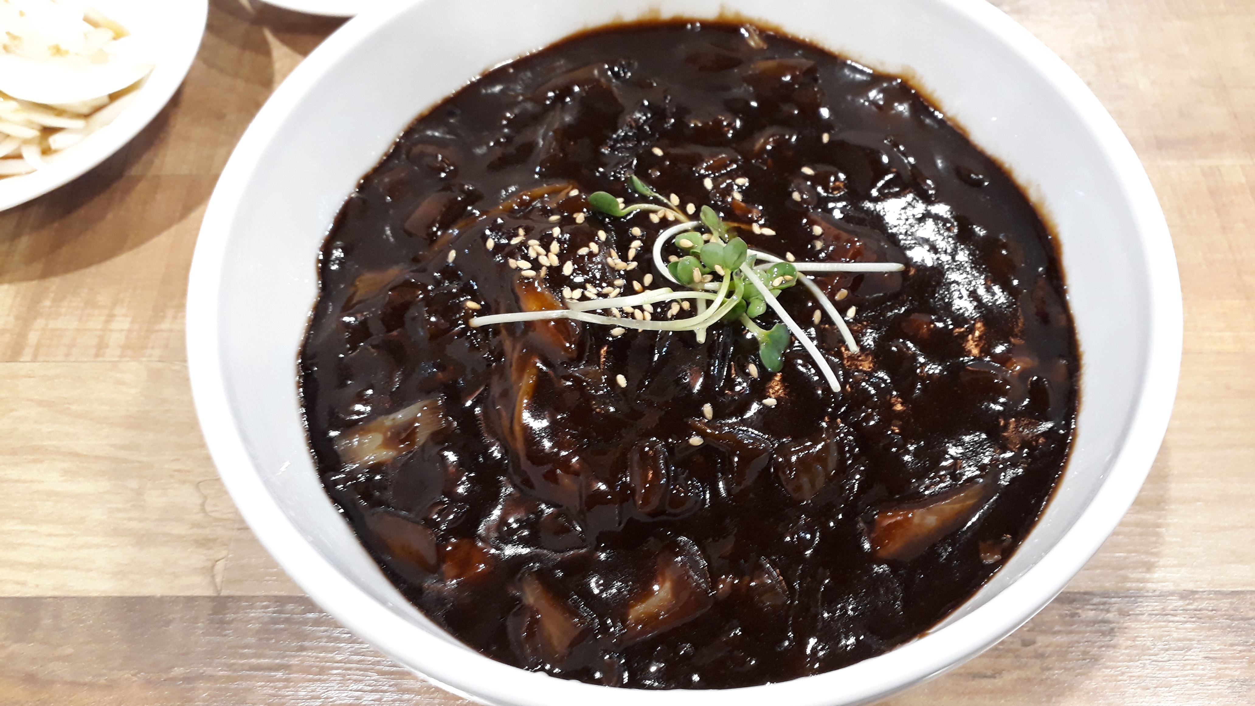 윤기가 나는 짜장면이 나왔네요. 아! 우측 가운데에 있는 건 특이하게 라면땅 같은 과자가 나왔는데 아무 생각없이 다 먹어 버렸네요. ㅋㅋ