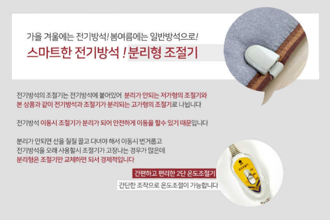 - 1인용 방석은 온도조절이 2단 까지만 됩니다.