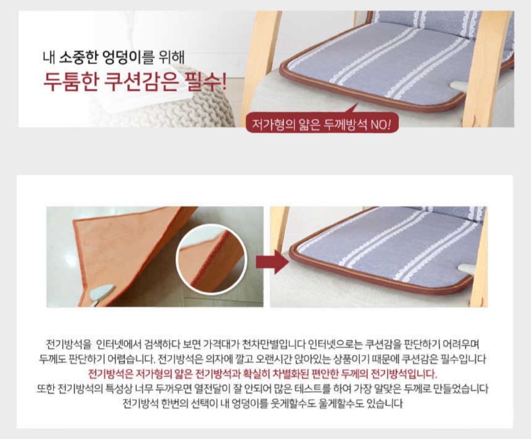 아래의 사진도 참고하셔서 안전하고 합리적인 가격대의 전기방석을 장만하시기 바랍니다.