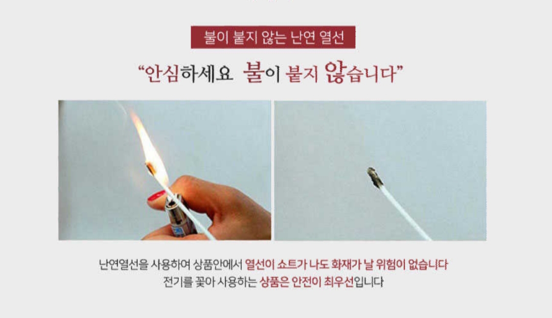 위의 4번(안전 열선)을 적용하지 않는 전기 방석 업체가 있어서 그것만으로도 결정하려고 했는데 가성비까지 좋으니 더이상 고민할 필요가 없겠습니다. 바로 열 가지 장점 중 꼭 사야할 한 가지 이유는 안전입니다.