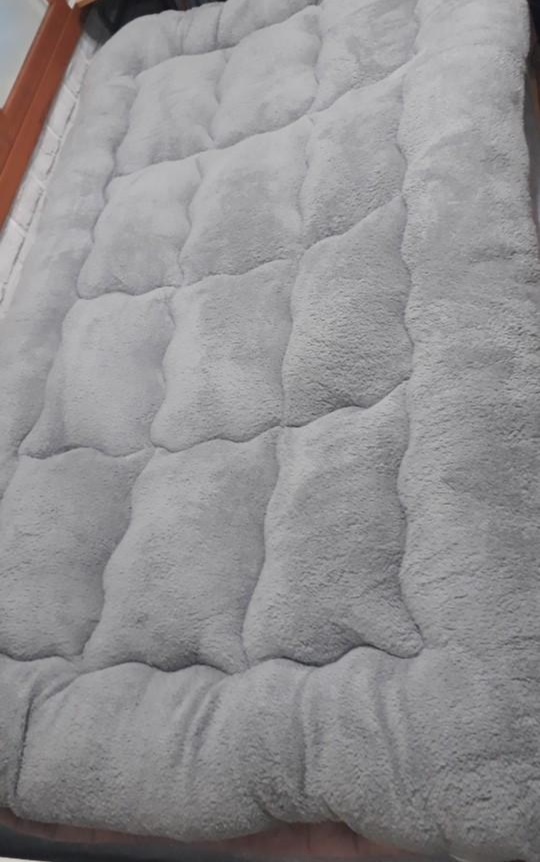 침대에 깔아 보았습니다 푹신한게 따뜻해 보이긴 하네요