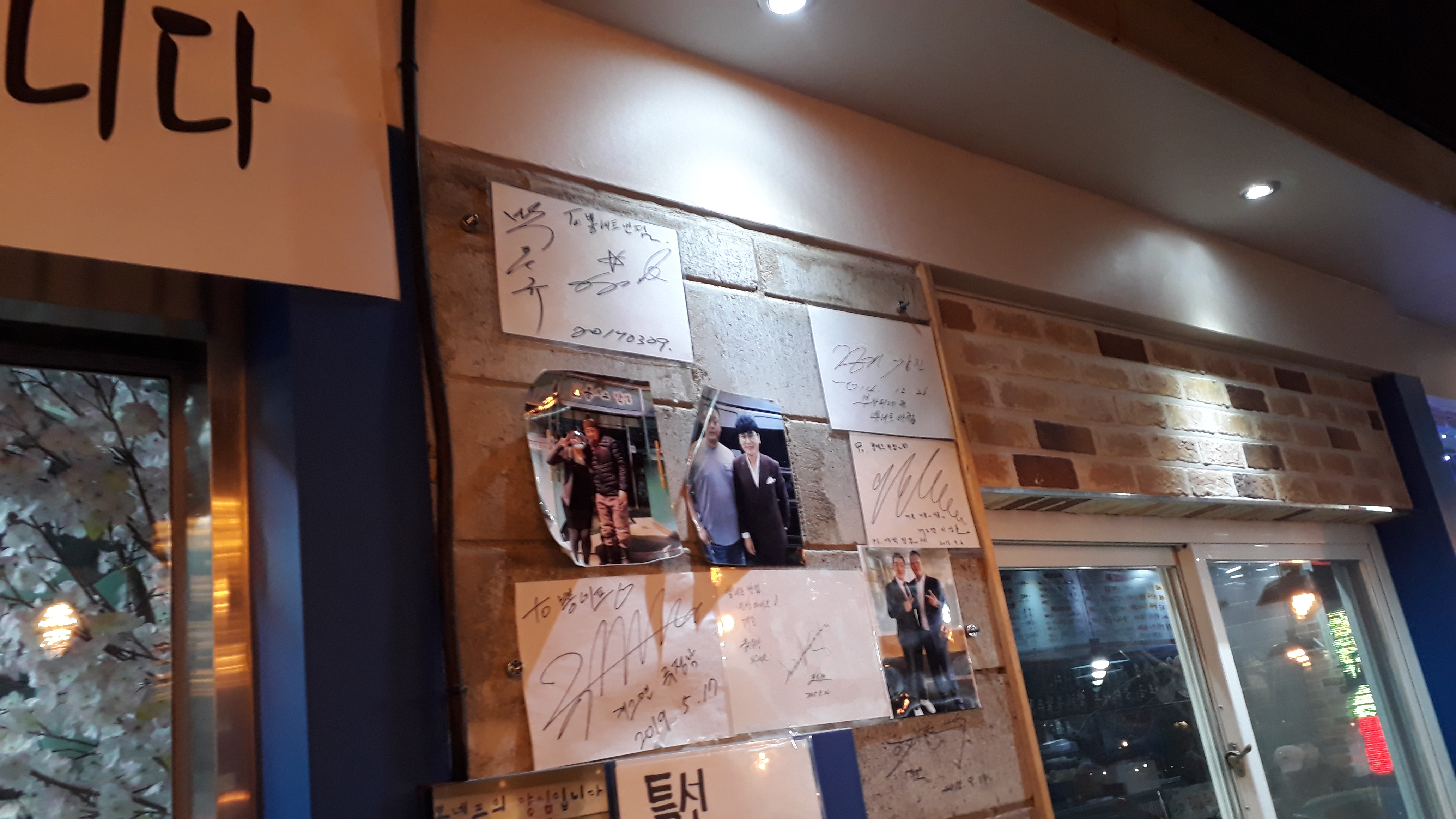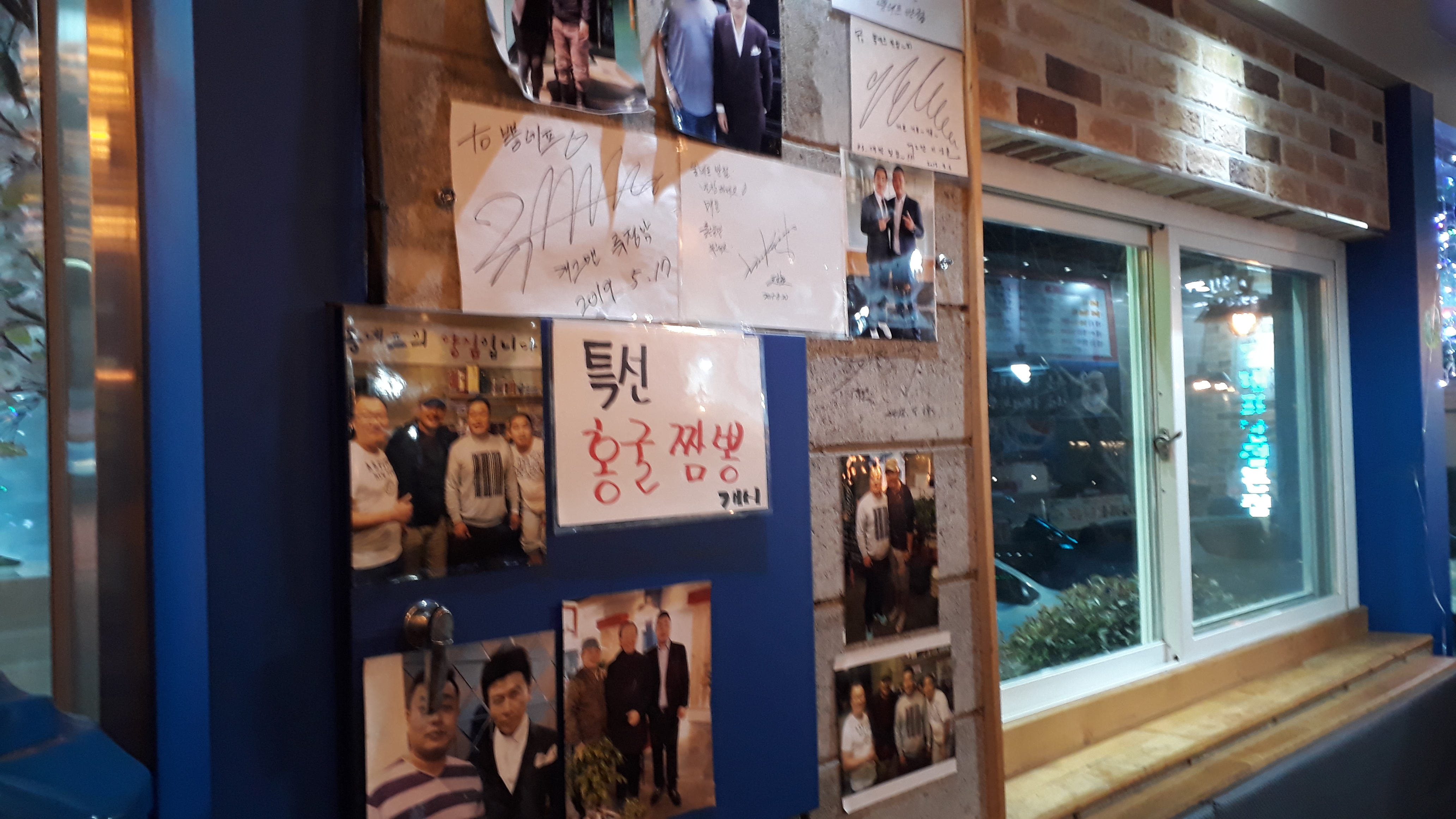 벽에는 유명한 연예인들의 사진과 사인이 있습니다. 마산 인근에서는 이미 맛집으로 알려져 있습니다.