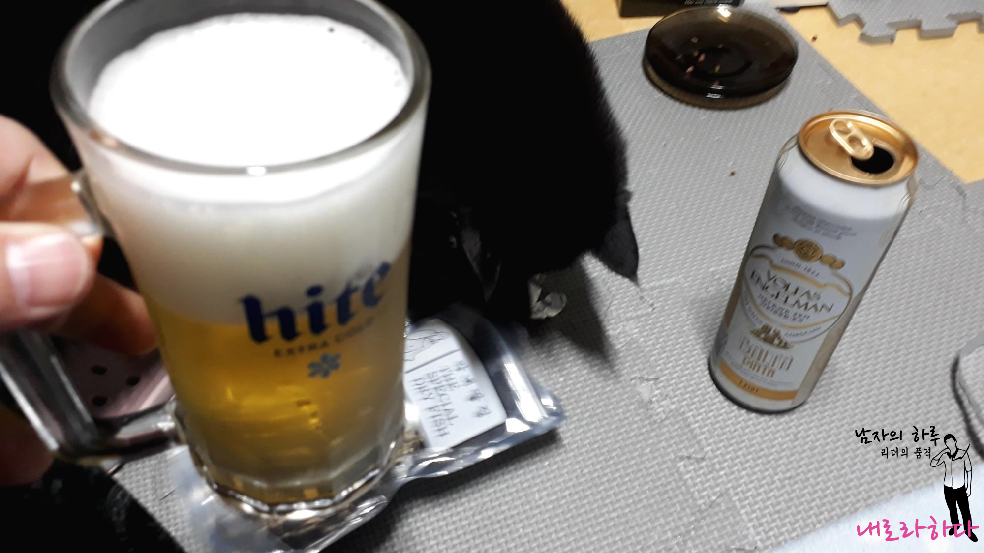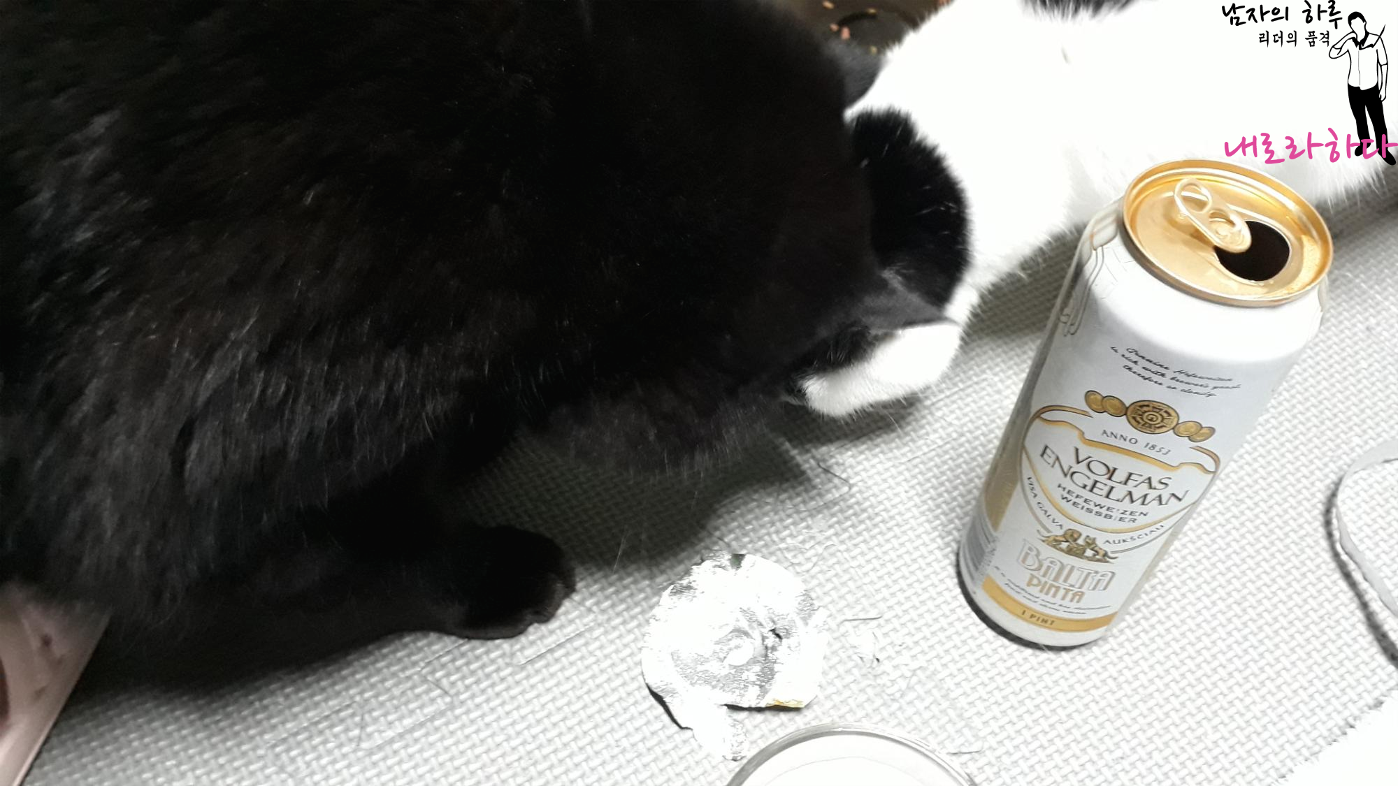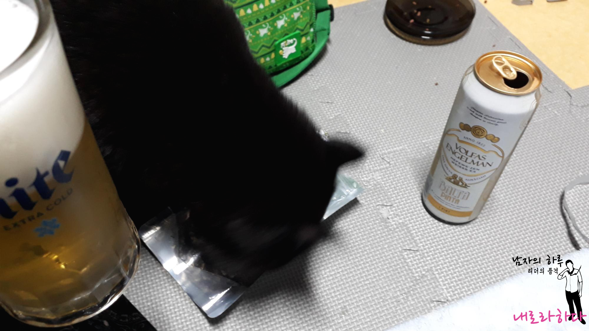 시원한 맥주를 한 잔 부으려고 잠시 내려 놓은 순간!!