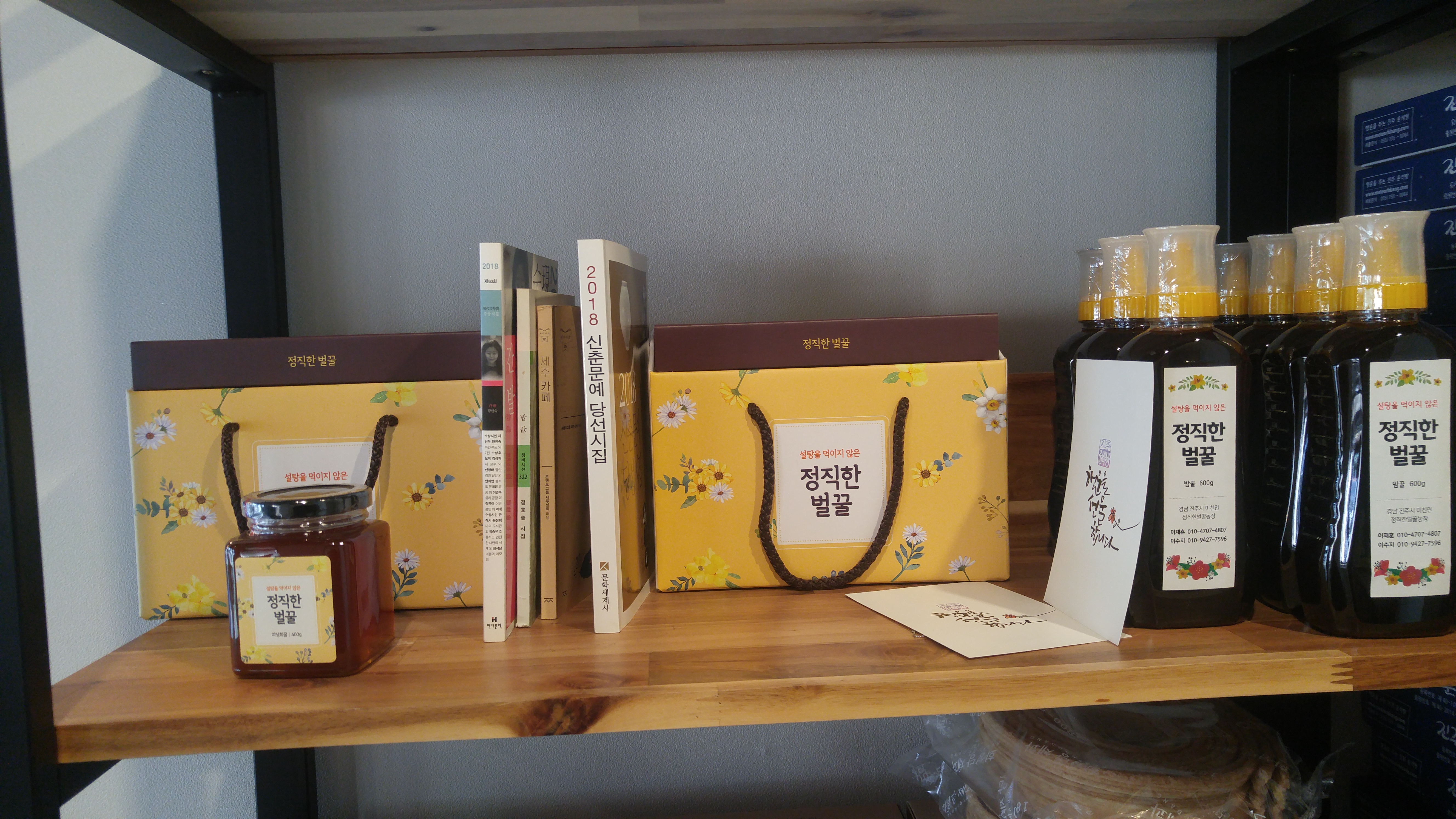 정직하다는 벌꿀에 츄러스에 에비앙에 이것저것 판매를 하고 있다.