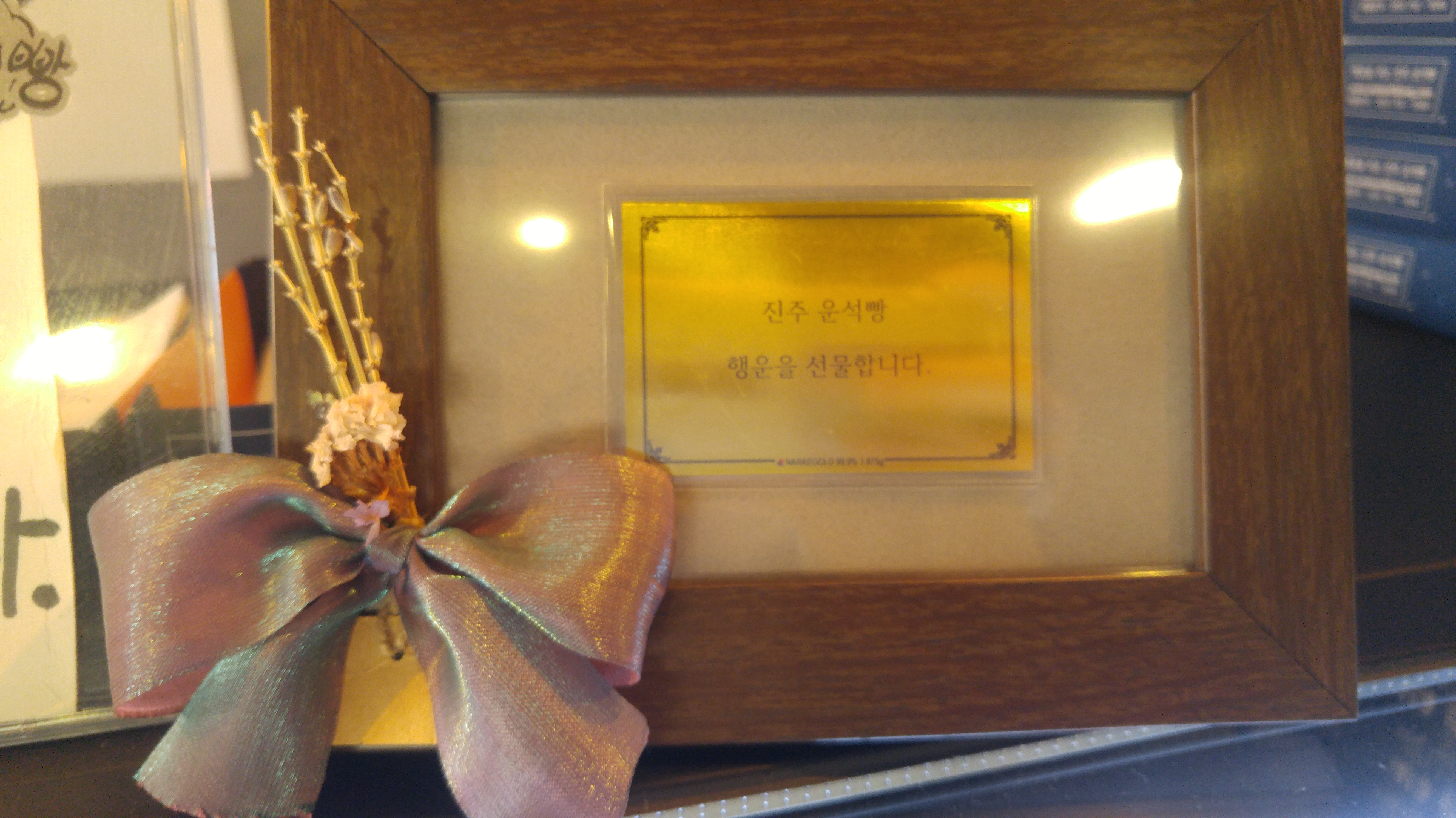 우측에 금으로 된 카드는 판매용은 아니고, 좋은 기운 얻어가시라고 기념으로 만든 것이라 한다.