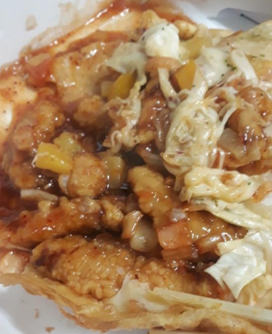 그냥 탕수육 위에 치즈 김치가 얹어져 있는