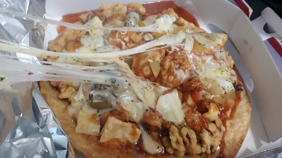 김치 피자 탕수육이라 해서 피자 토핑 처럼