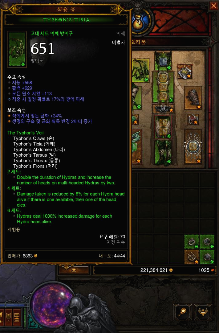 마법사 신규세트의 장비 이름은 티폰의 너울 이라는 티폰 세트입니다