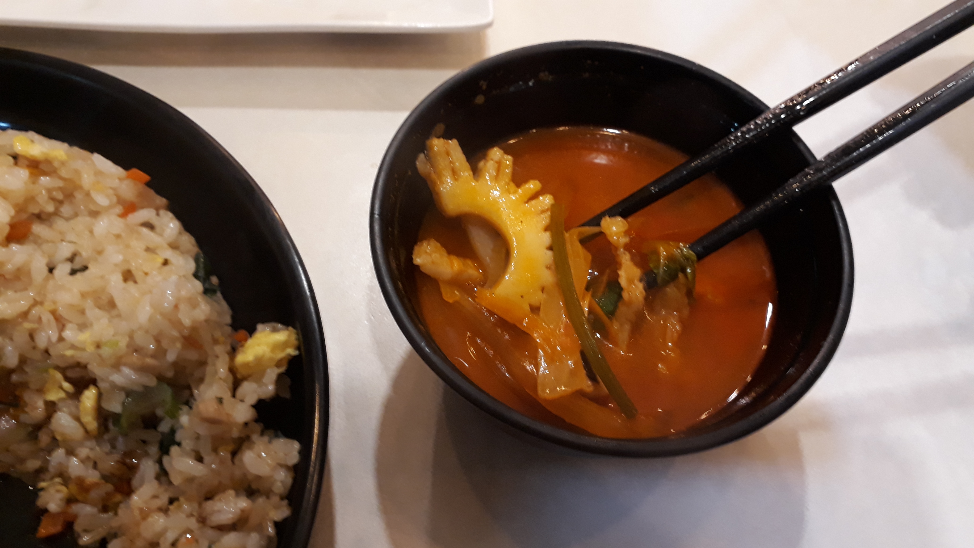 음... 제가 좋아하는 맛은 아닙니다. 정통 중화요리 특유의 고소한 동물성 기름맛이 안 나고 집에서 식물성 기름에 요리한 것처럼 깔끔한 맛에 밥도 덜 고슬해서 아쉬운 맛입니다. 중국집 볶음밥은 원래 살짝 갈색빛이 돌아야 하는데 말이죠.