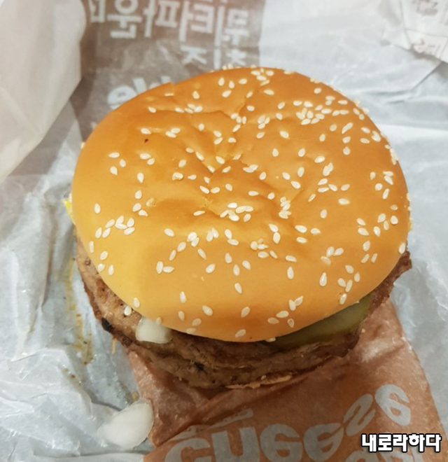 이 버거는 패티가 두 개라서 포만감이 있는 제품인데요.